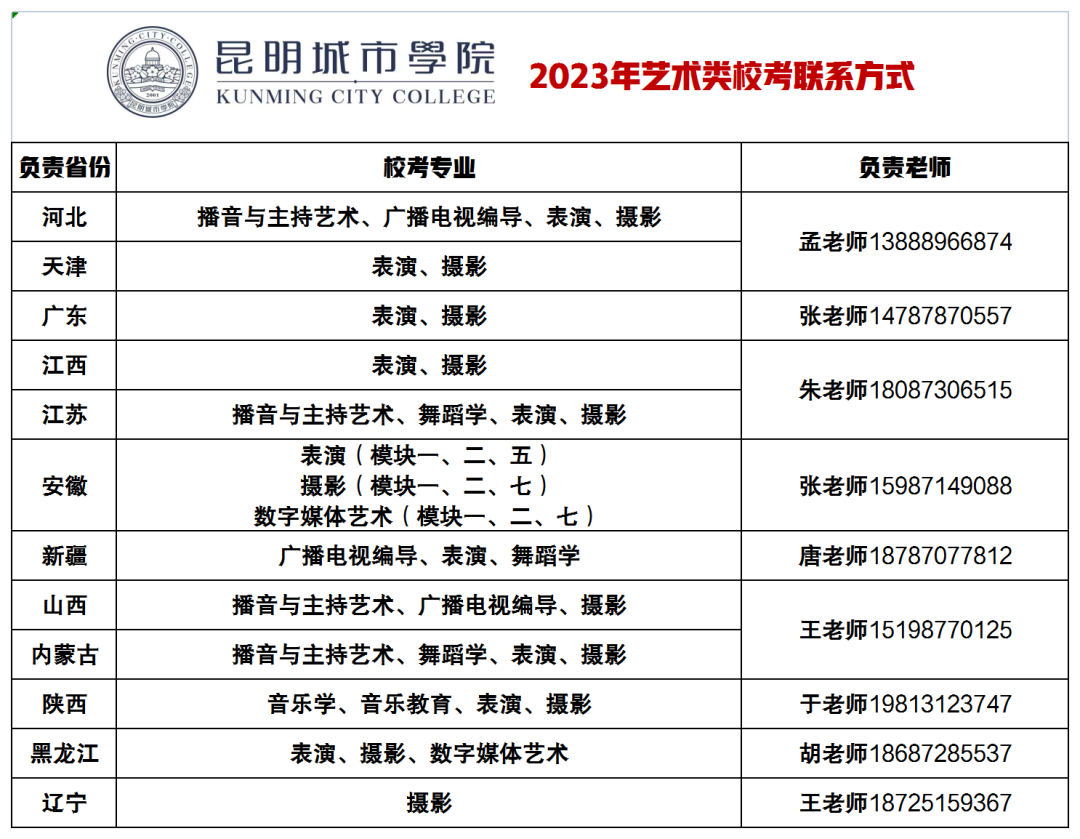涉及校考省(直辖市、自治区)为天津市、河北省、山西省、内蒙古自治区、辽宁省、黑龙江省、江苏省、安徽省、江西省、广东省、陕西省。