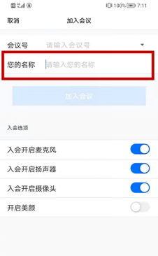 考生使用设备登录“腾讯会议”软件,根据老师提供的会议号提前10分钟进入等候室等待面试,加入会议时“您的名称”填写对应的面试序号(不要填写个人姓名或者网名)。如图所示。