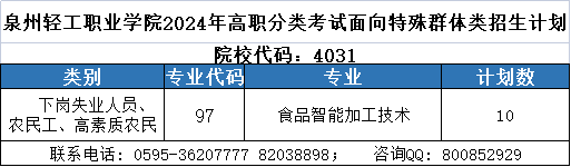 1、福建省高职分类考试录取实行按专业志愿平行投档,想就读我校考生,请在4月16日8:00~17日18:00常规志愿批次填报我校,院校代码:4031。