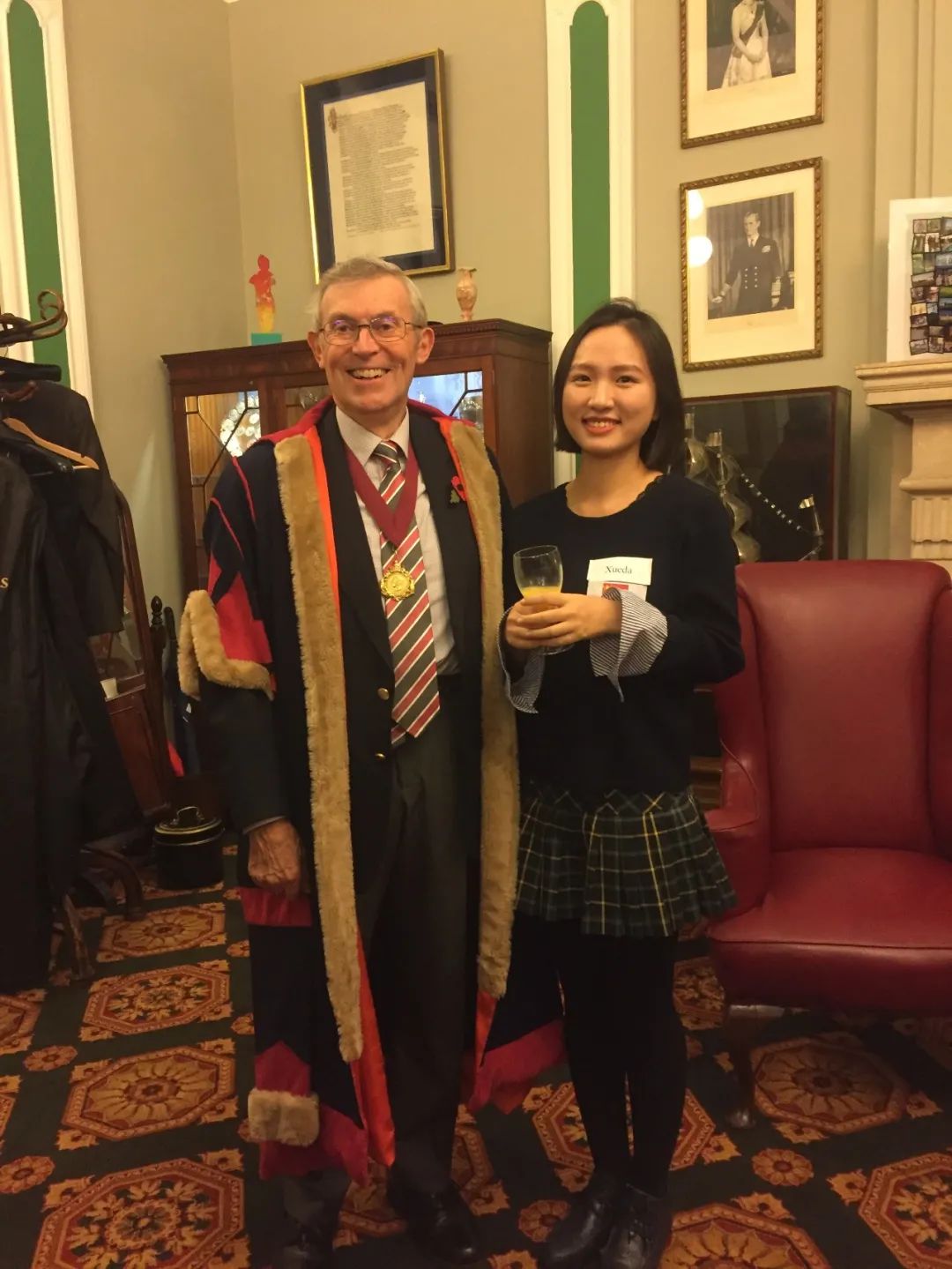 图9:我校学生丁雪达与科尔切斯特镇政府市长合影。