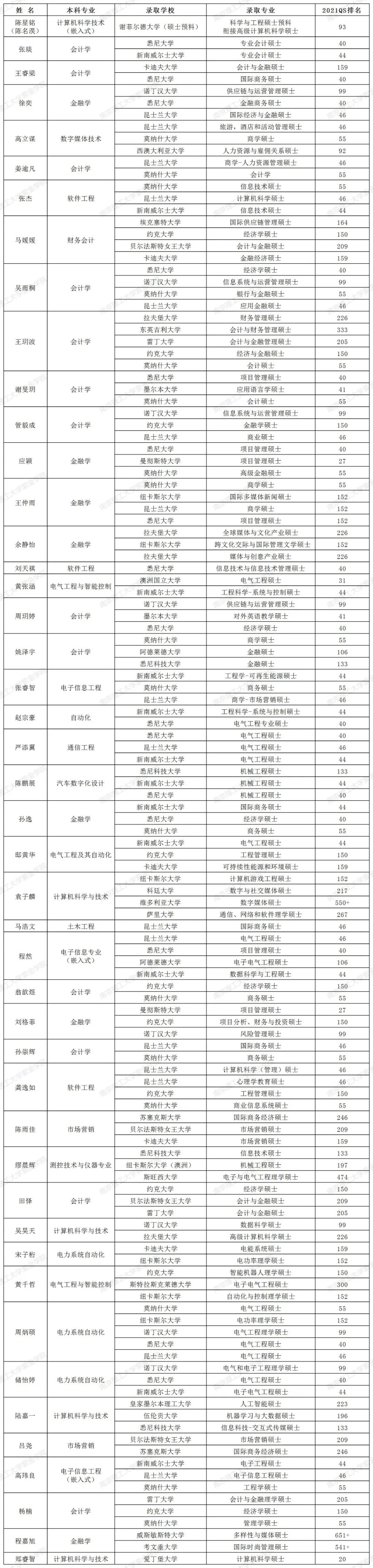 图8:2017级国际部毕业生获国外硕士Offer情况汇总。