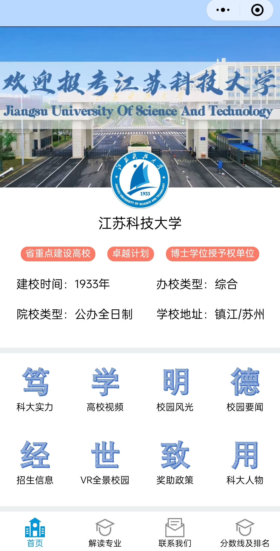 本科招生微信小程序包含我校最新招生信息、奖助政策、学院专业介绍等相关信息,欢迎广大考生及家长添加关注。