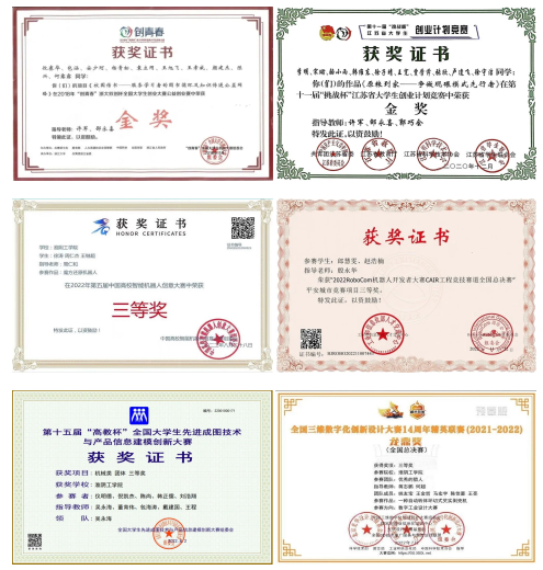 学院重视大学生创新实践能力培养,近三年,每年约有300余人次获省级以上学科竞赛奖,我院“校园传书”项目在2018年全国“创青春大赛”中获金奖,实现学校重大国赛金奖的突破;2020年“原粮到家”项目获“挑战杯”国赛铜奖、省赛金奖;2021年获“挑战杯”和“互联网+”省赛各1项,2022年“A+追忆阿尔兹海默症荧光检测棒”项目获“挑战杯”国赛银奖。2023年学院项目在积极备赛“挑战杯”和“互联网+”国赛中。学院依托学科特色,强化以创新创业能力成长为主线的素质教育,构建以广泛参与、项目训练、竞赛引领、文化营造为主要特点的创新创业实践教育体系,以项目为抓手吸纳学生参与科研创新,积极鼓励在读大学生参加全国各类创新创业大赛,通过参赛培训,提高学生参赛水平,进而培养大学生的创新能力,组建创新创业培训班,让同学实现“产生一个创意,申报一项专利,参加一项赛事”——“三个一”的目标。邀请专任教师担任专业社团的指导老师,每年学院机器人协会、3D动力协会、机械工程师协会等创新创业团队在学科竞赛方面均取得傲人成绩。