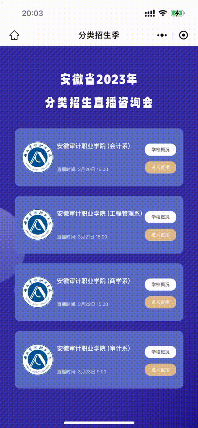 ①扫描下图二维码进入“分类招生季-安徽审计职业学院专场”。