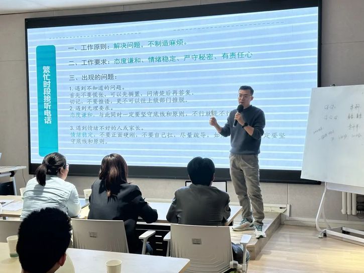 招生处胡茂盛老师分享了电话咨询服务和线下招生宣传工作中的经验技巧与注意事项。让老师们掌握了如何在不同场合、针对不同受众、有选择有重点的提供咨询服务,以此选拔和组织优质生源。