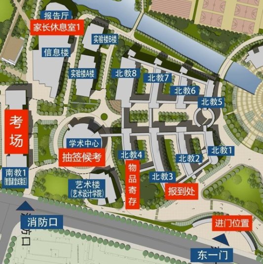1、考生从本部校区(东一门)按指定通道排队进校;陪同人员和车辆可一同进校。