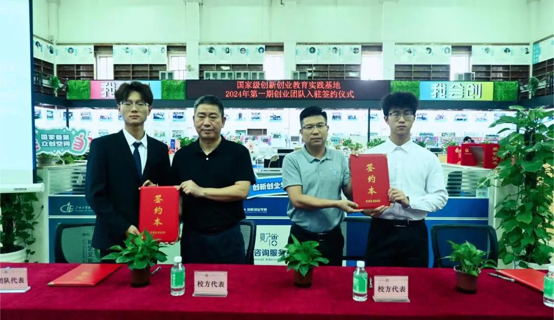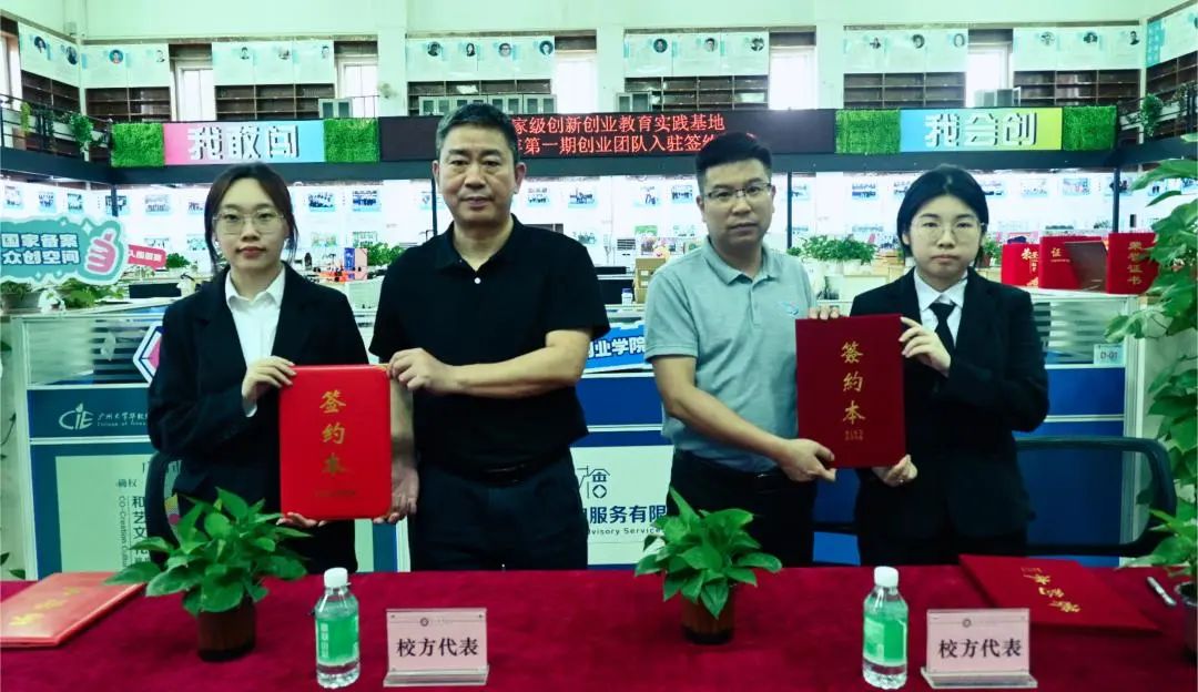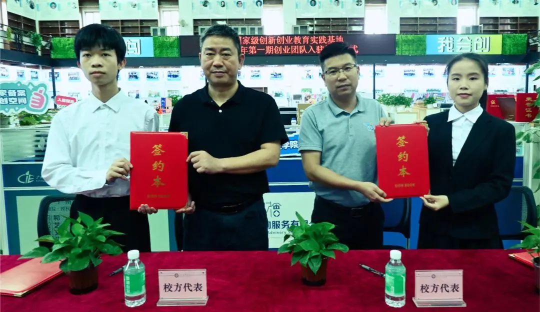 29支新入驻创业团队负责人依次上台与校方代表进行签约,正式入驻