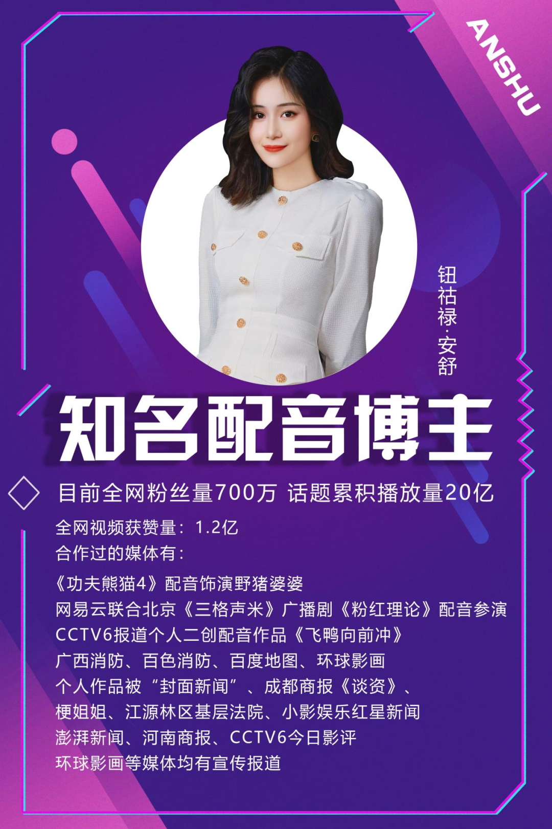 最近,张孟蝶在备受瞩目的《功夫熊猫4》中为野猪婆婆一角配音,她的表现堪称惊艳。她以独特的嗓音和精湛的演技,将野猪婆婆的性格特点展现得淋漓尽致,深受观众喜爱。她的声音既带有一种野性的力量,又不失温情和细腻,让人仿佛看到了那个活泼可爱、机智过人的野猪婆婆就在眼前。
