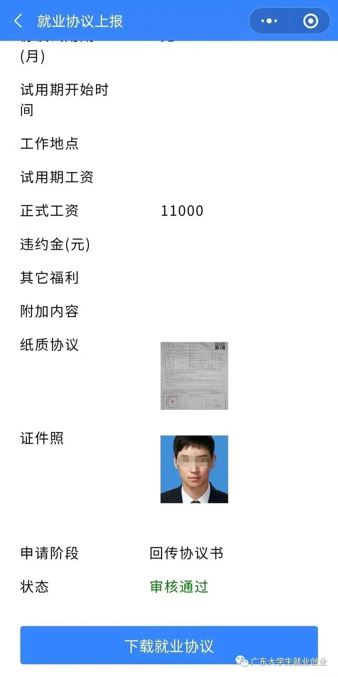 上传签字盖章的纸质就业协议书后,待院校审核完成自动生成带院校电子签章的电子就业协议书,院校和学生都可自行下载打印。