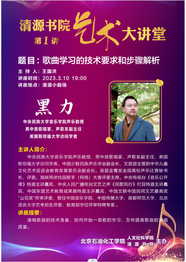 自2020年起,学校特聘北京大学杨荣祥教授,领衔开展人文素养大讲堂,提升学生文化素养。先后邀请北京大学、清华大学、北京师范大学等高等院校的知名学者前来讲学,已成功举办40讲,与之相呼应的艺术素养大讲堂也已成功开办12讲,两个专题系列讲座均受到学生的热烈欢迎,年参与5000余人。2023年面向全体学生开设美育课程92门次,基本实现了对各大艺术门类的全覆盖。整合提炼相关学科的美育内容,开设《旅游美学》《汉字的奥秘》《艺术设计基础》等专业之美特色课程,推进课程美育与美育课程同向同行。