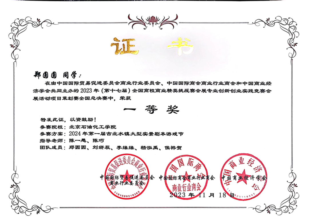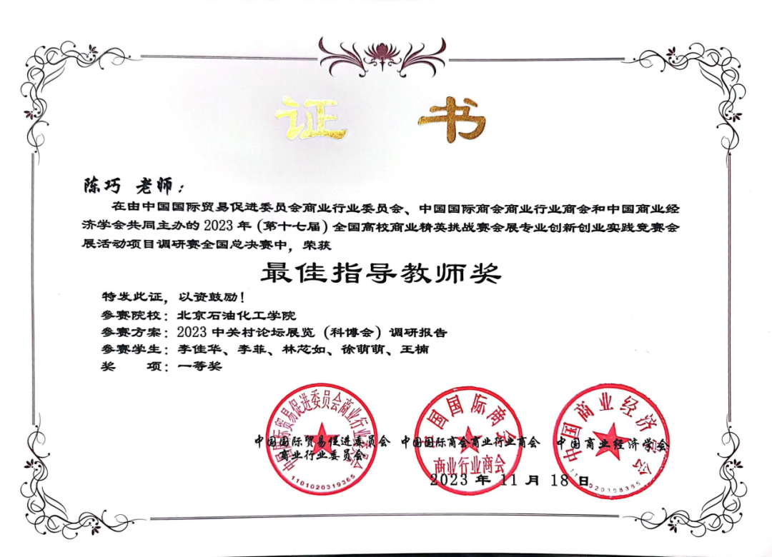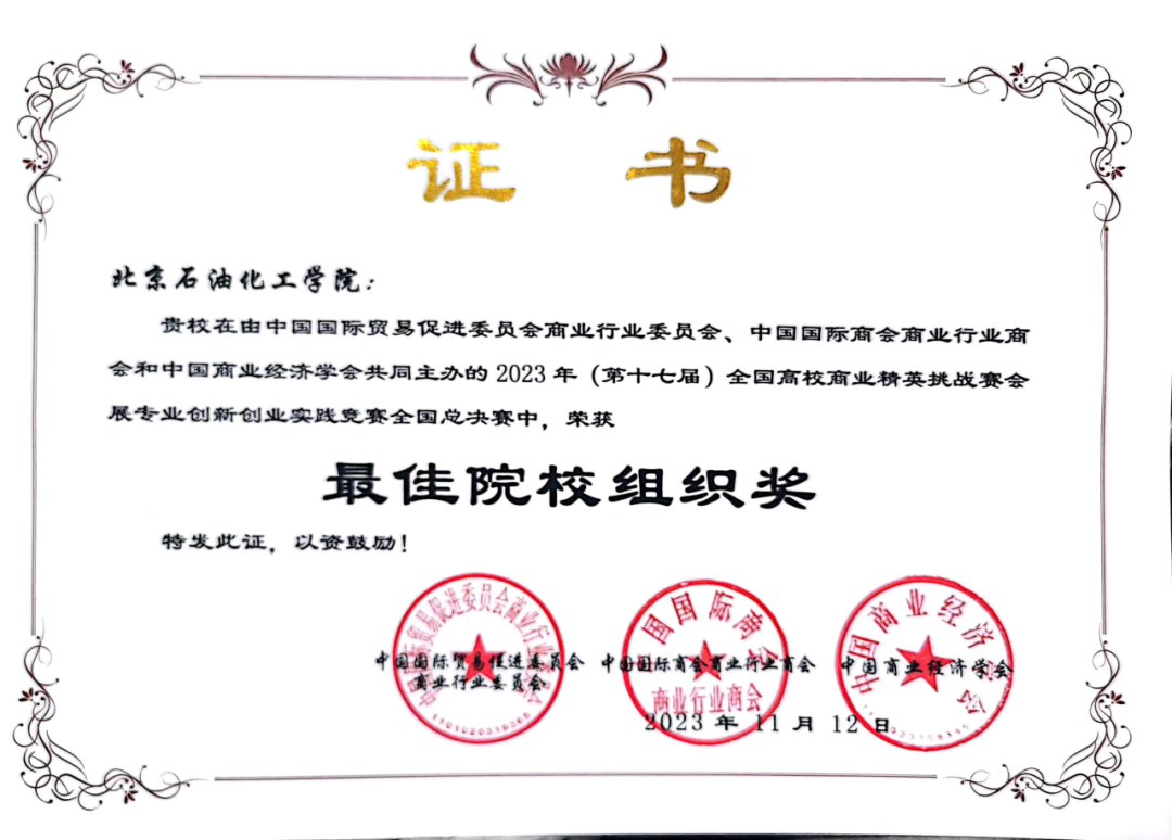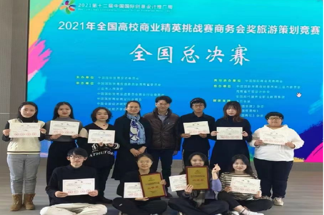 学院高度重视创新创业教育,坚持党委把方向,团委抓落实,任课教师和辅导员共同参与,第一第二课堂协同推进。学院率先开设了职业生涯规划和就业创业指导选修课,把职业规划和就业创业指导贯穿人才培养全过程。以“挑战杯”“互联网+”“致远杯”“商业精英挑战赛”等赛事为契机,结合旅游管理、人力资源管理和会展专业特点,以赛促练、以赛促学,对学生在创新思维开发、社会调查方法学习、数据分析统计、论文撰写和团队合作等方面进行专项培养。近5年来,学生参加学科竞赛人数和获奖率均不断提升,在“互联网+”大学生创新创业大赛、全国高校商业精英挑战赛等学科竞赛中,获得省部级及以上奖项73项,获奖人次达397人。在第八届中国大学生创新实践大赛(HRU8)北方地区赛中,10名学生获大赛团体二等奖1项,个人一等奖2项,二等奖4项。在第九届中国国际“互联网+”大学生创新创业大赛北京赛中,获二等奖1项、三等奖3项。在2023年第十七届全国高校商业精英挑战赛会展专业创新创业实践竞赛精英赛中,获6个国家级奖项,其中,一等奖4项,二等奖、三等奖各1项,实现了学院参赛以来的新突破。