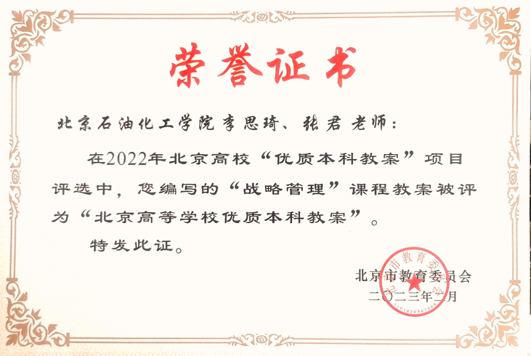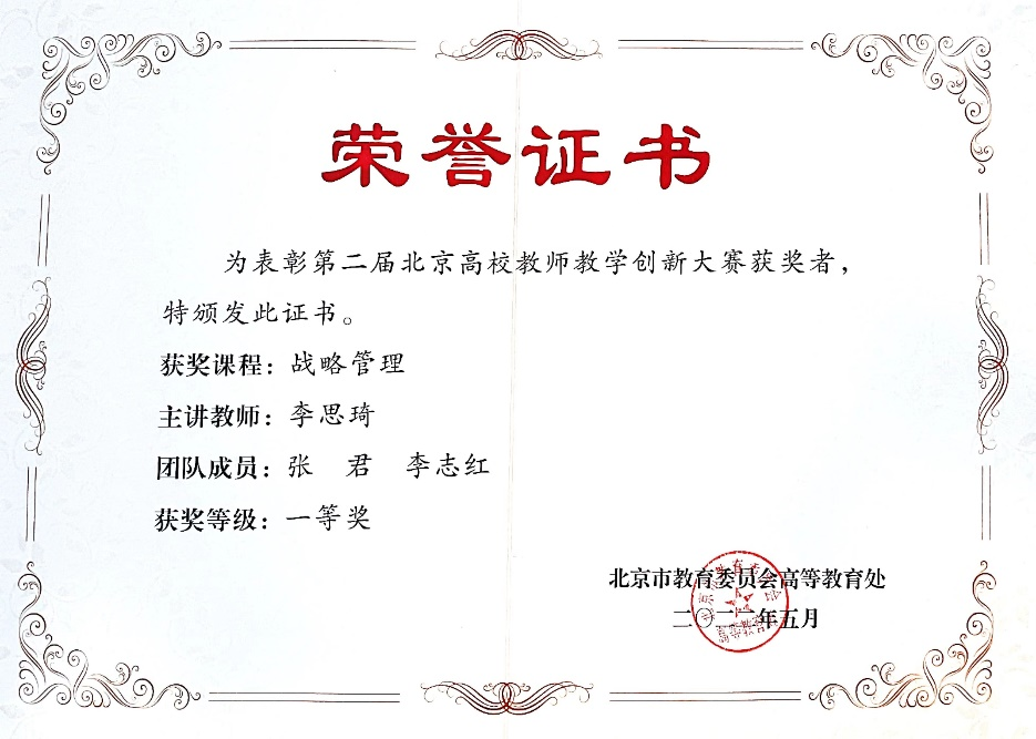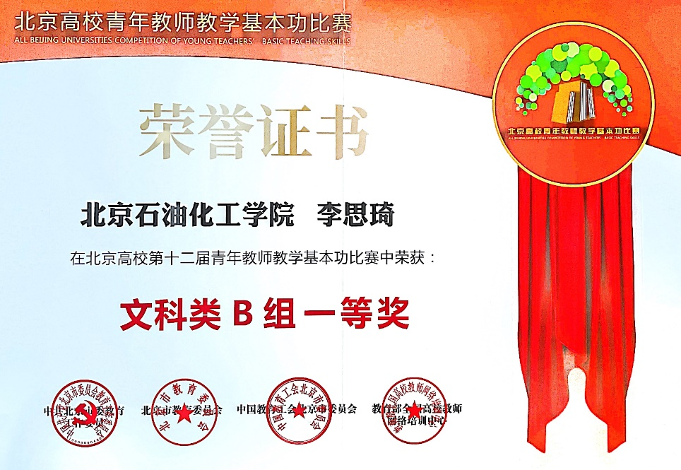 学院确立了“名师引领、专业分工、协同共建”的教学团队建设与运行机制。通过“以老带新”传帮带和“以新促老”激活力等方式,提高青年教师的教学水平,发挥学院骨干教师的示范和辐射作用,取得显著成效。2019、2021、2023连续三届获北京高校青年教师教学基本功比赛一等奖和最佳教案奖、最佳演示奖和最受学生欢迎奖,优秀指导教师奖;北京高校教师教学创新大赛一等奖、三等奖各1项,全国高校教师教学创新大赛二等奖1项,北京市课程思政示范课程1项,北京高等学校优质本科教案1项。