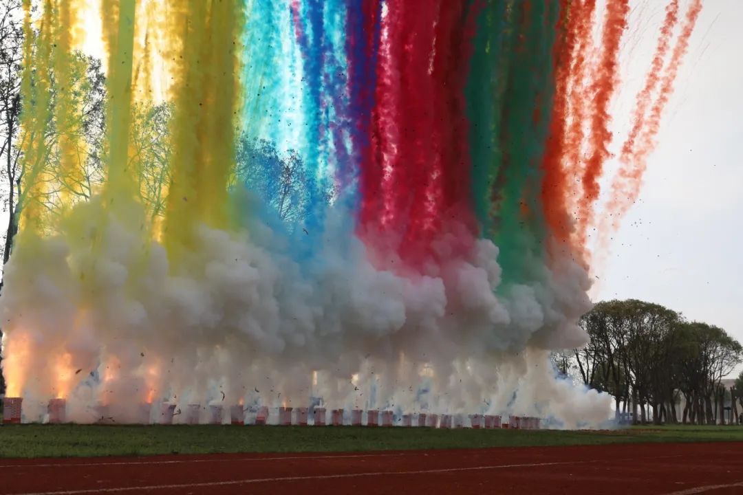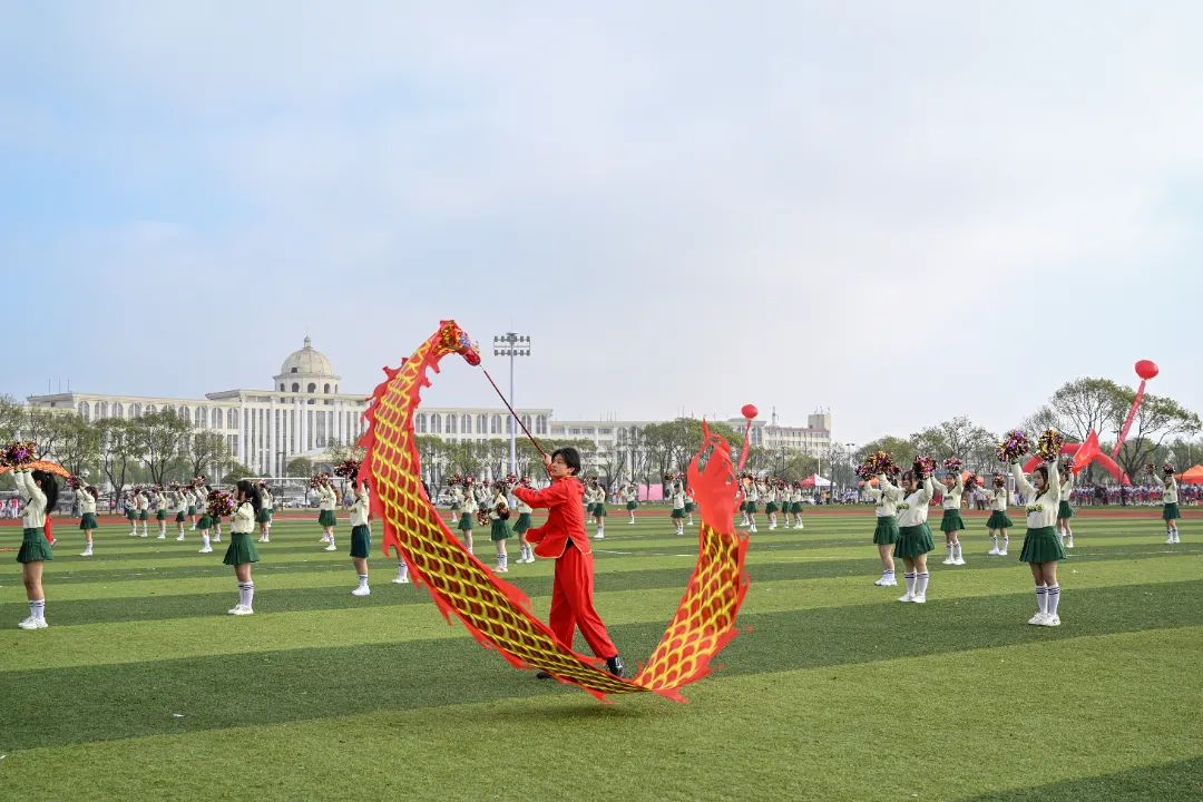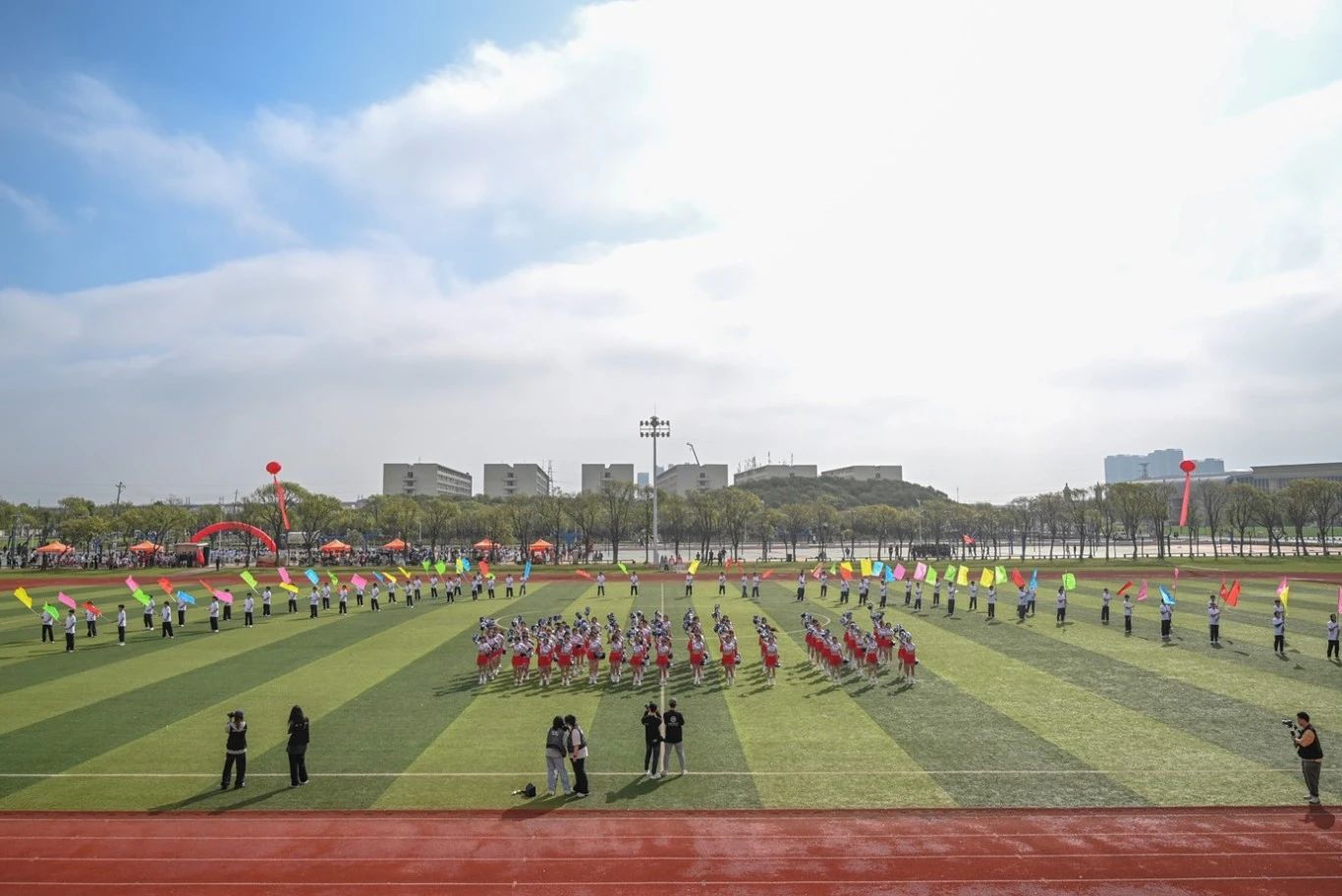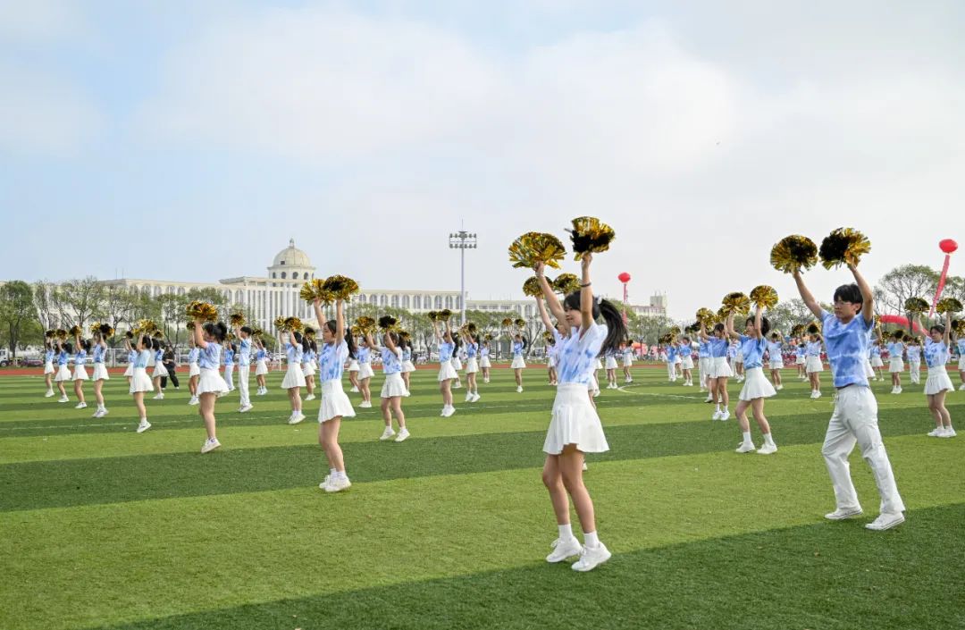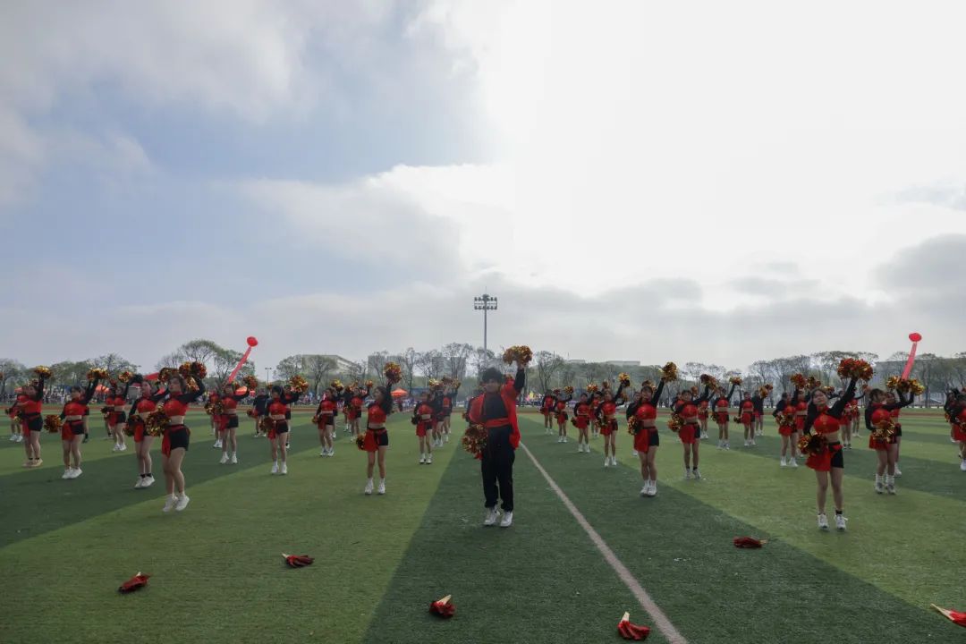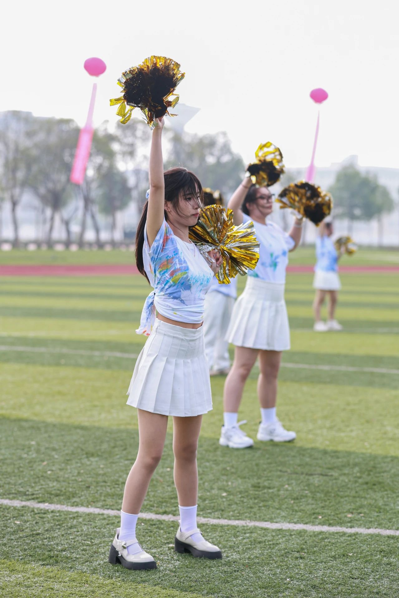 接下来进行了团体操竞赛。音乐欢快,节拍律动,同学们的身体随着音乐起伏,每一个动作都精准到位,充满了力量和美感。明媚似是暖阳的笑容,驱散空中阴霾;轻燕一般跃起的步伐,舞出青春美好。同学们通过这场比赛,展现了团结、拼搏、向上的精神风貌,为运动会增添了浓墨重彩的一笔。