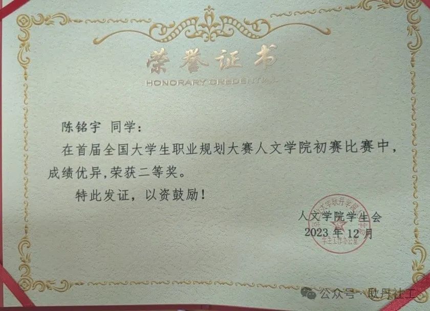 参加这次职业规划大赛,对我来说,不仅仅是一个比赛,更是一次深刻的自我探索和未来规划的过程。整个过程中,在老师的帮助和指引下,我不断地思考自己的兴趣所在、优势所在,以及我对未来的期待,确定了自己的职业目标。获得这个奖项,对我来说,既是一种认可,也是一种激励。它激发了我继续前进的动力。这只是开始,真正的挑战和机遇都在前方等待着我。我将继续保持学习的热情,不断提升自己的专业技能和综合素质。通过这次大赛,不仅锻炼了自己的能力,重要的是,勇敢地迈出实现职业目标的每一步。