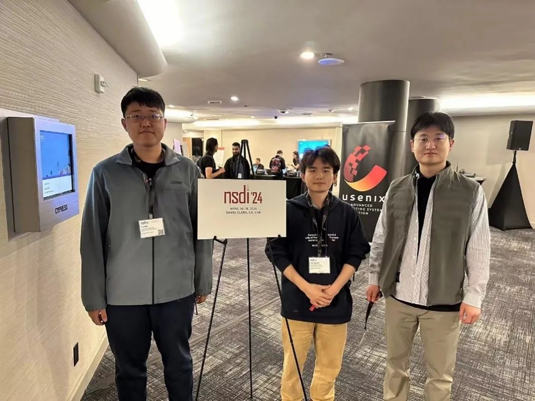 NSDI是计算机网络领域公认的三大顶级学术会议(即NSDI、Sigcomm和MobiCom)之一,主要聚焦于计算机网络的系统性设计和实现,也是产业界最为关注的学术会议。NSDI’24于2024年4月16日至4月18日在美国圣克拉拉举行,虞红芳团队研究生马铁、谢景昭、马崇喜参加了会议,并在大会上进行了口头报告、海报展示、视频演示和现场操作演示。在会议上,该研究受到了国际同行的高度认可和关注。如Emulab创始人Eric Eide和Mininet创始人Bob Lantz都认为klonet的易用性和扩展性非常适合计算机网络教学,降低了学习者的门槛;大会的co-chair Irene Zhang(Microsoft Research)和Laurent Vanbever(ETH Zürich)认为该工作是令人影响深刻的。