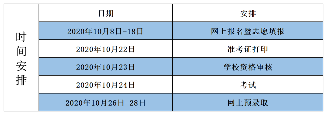 录取时间:2020年10月26-28日在网上预录取。