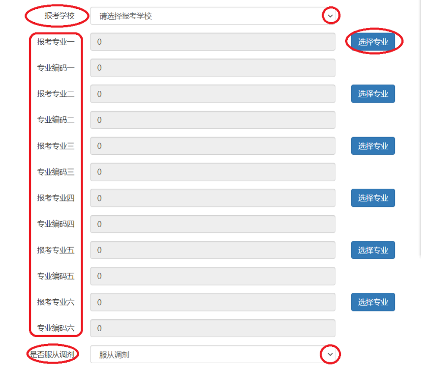 其次,于报名页面中依次填报“报考学校”、“报考专业”、“是否服从调剂”等选项,“专业编码”自动生成,填写完成后点击“保存报考信息”。在规定报名时间内,考生可对已填报的志愿进行修改,报名结束后,不可修改。