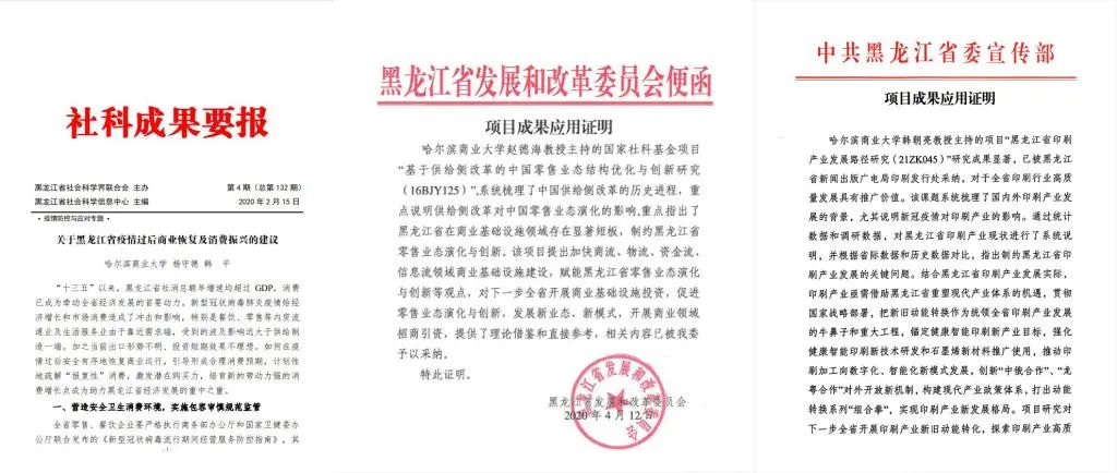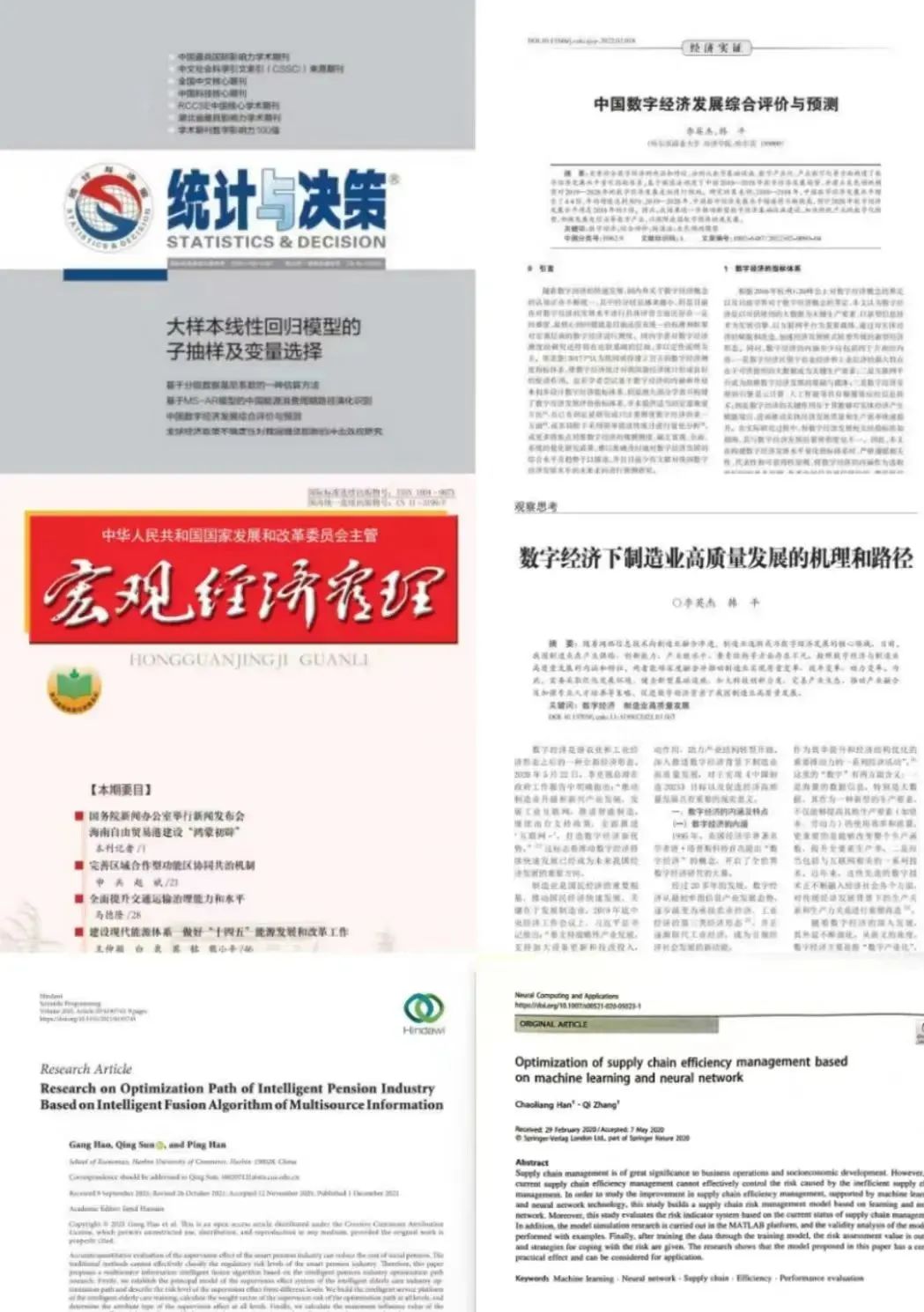 加快科研成果转化 服务地方经济发展随着黑龙江省数字经济“一号工程”战略实施,数字经济领域亟需科技创新智库研究国内外数字技术发展趋势,开展科学评估,进行预测预判,提出咨询建议,促进数字技术与经济社会发展深度融合。学科抢抓数字经济科技创新智库发展机遇,依托黑龙江省数字经济重点培育学科,快速反应,整合资源,逐步形成在全省领先的科技创新智库优势,以科学咨询支撑数字经济科学决策,以科学决策引领数字经济科学发展。团队专家先后3次参加省委关于数字经济发展的专家座谈会。团队全过程参与黑龙江省“数字经济20条” “数字经济规划” “平台经济实施意见”等政策文件的起草、修改、制定。受黑龙江省人大委托对黑龙江省数字经济发展情况开展全面调研,完成《关于支持新经济业态发展 激发数字经济活力的建议》,公开发布《黑龙江省数字经济研究报告》,作为黑龙江省人大审议全省数字经济发展的重要依据。团队成员作为首席技术顾问,全过程指导数字供销、公共视频监控系统、基层治理、数据流通交易等省市重点项目建设。为中国移动黑龙江分公司、黑河市政府编制“十四五”数字化转型高阶规划,为区域与产业数字化转型提供顶层设计。为黑龙江干部教育网络学院、教育厅、商务厅、供销合作社以及佳木斯市、黑河市等单位、地市作数字经济专题讲座、专家报告50余次,成为全行业全领域提高数字素养的主要渠道。接受黑龙江电视台、黑龙江日报数字经济专访18次。主持完成《黑龙江省数字经济发展研究报告》等研究报告6部。在黑龙江日报、奋斗等刊物提交决策咨询22篇,部分决策咨询报告获得省级领导肯定性批示。