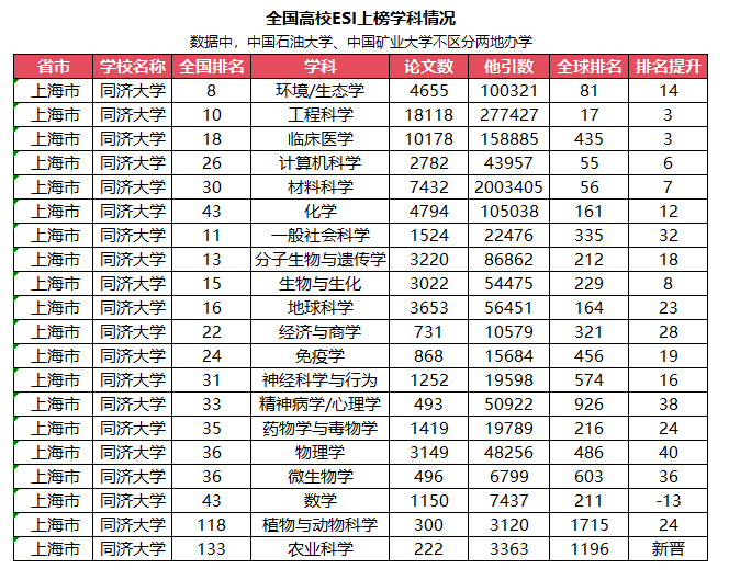 20个学科进入ESI全球排名前1%,其中6个学科进入ESI前千分之一;