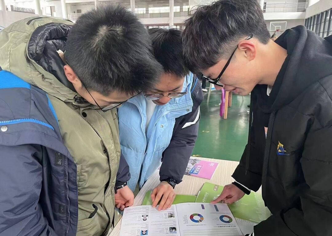 2月3日,团队成员一行来到高中母校。宣讲活动在学校体育馆举行。团队宣讲效果显著,宣讲期间有许多学弟学妹们主动来了解