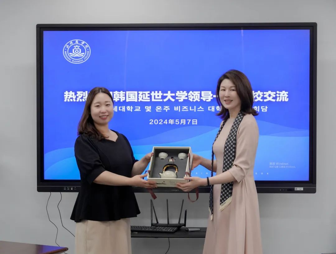 座谈会上,双方代表就温商学子通过“3+1”本科直通、“4+1”硕士连读菁英计划前往韩国延世大学升本、升硕,开展深入交流,并在会后互赠纪念礼物,象征两校合作新起点。