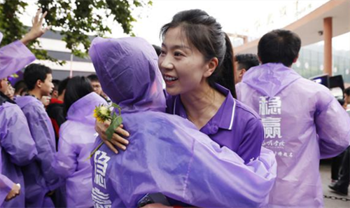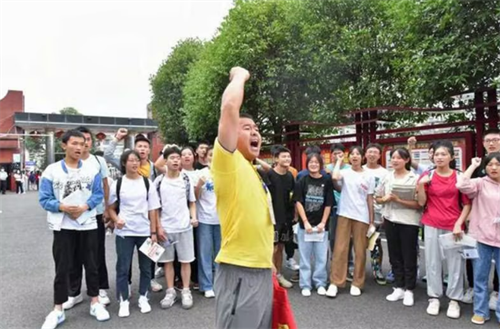 泸州市合江中学所有领队老师穿上“战袍”为考生祝福。