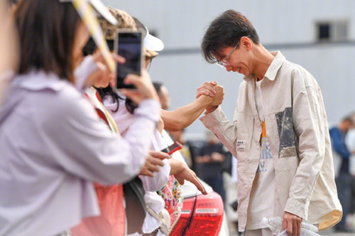 老师和学生,互相击掌加油!