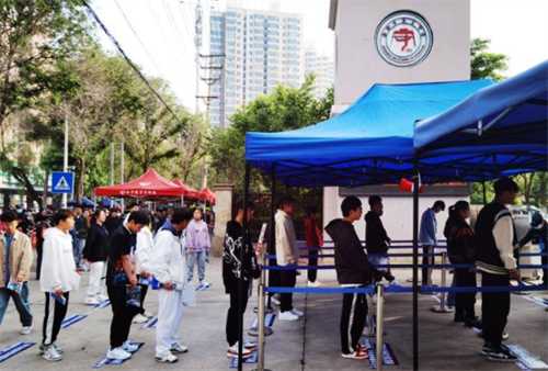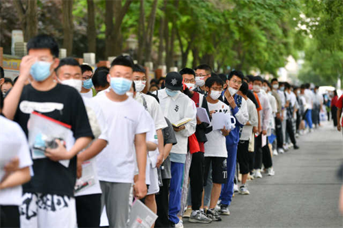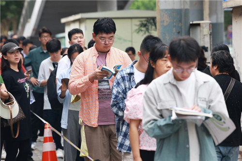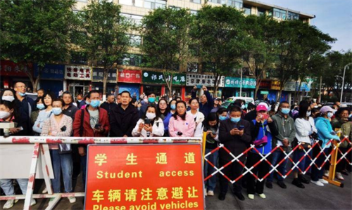考点前,考生排队等待!