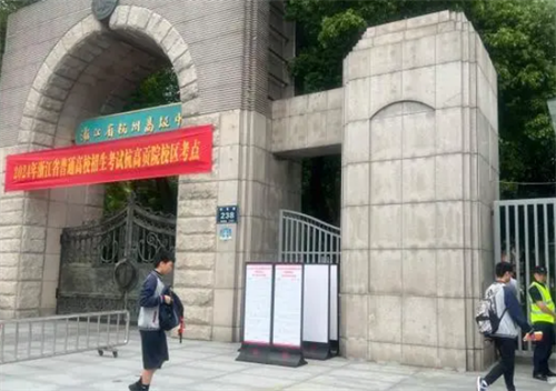 早上6点50分,杭州学军中学考点门口,已经有考生陆续来到。