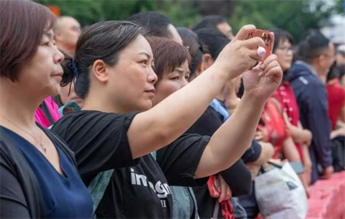 青岛家长穿旗袍为孩子加油助威,并拍照纪念人生中的重要时刻!