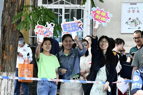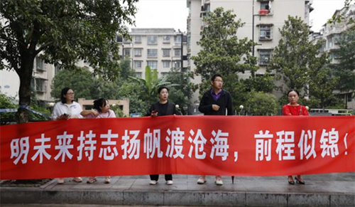 妈妈团为考生加油助威!