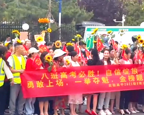家长结队给考生加油!