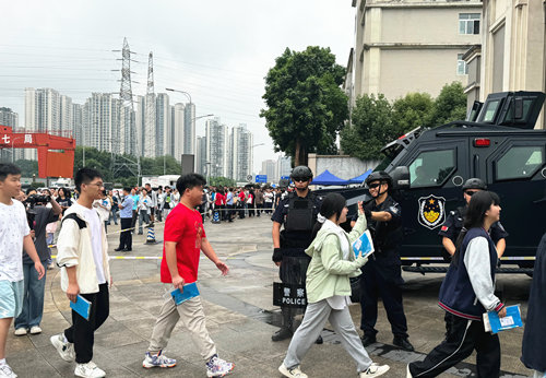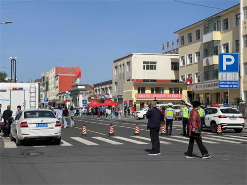 交警叔叔是最早到场的,引导学生有序过马路,清扫前往梦想之路的障碍。