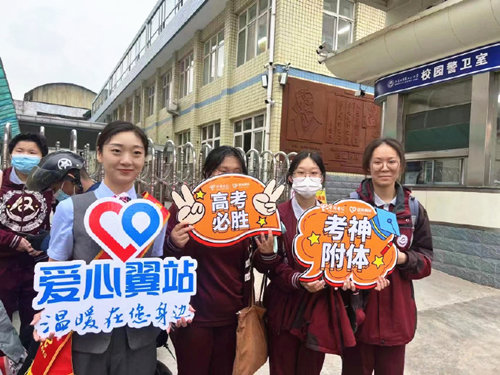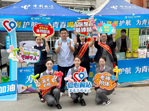 为迎接2024年高考,中国电信河北石家庄分公司“爱心翼站”开展“高考必胜”志愿服务活动。