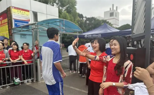家长挥手祝福考生。