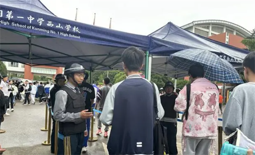 贵阳各考点前,执勤民警、