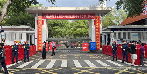 长沙市第一中学考点外,可以看到“考场守护神”长沙