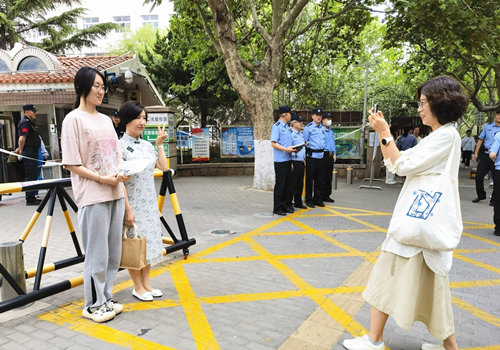 常德市一中考点,考生与家长合影,给自己加油打气。
