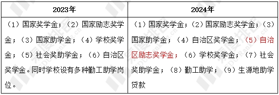 表5 内蒙古科技大学包头医学院助学金设置变更