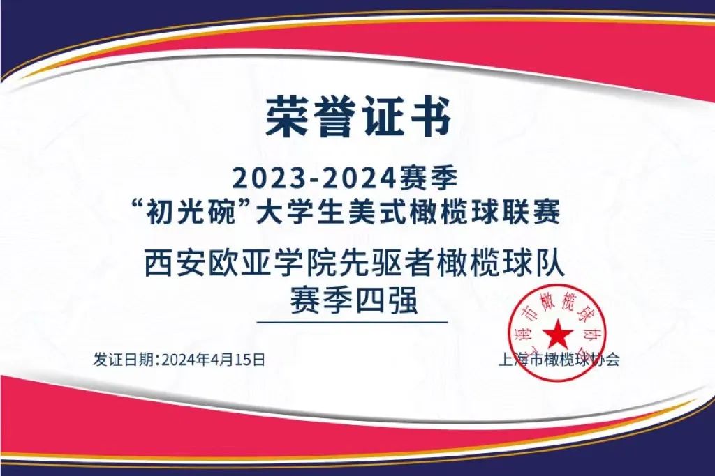 欧亚有着20多个各具特色的体育俱乐部、10余个体育类社团满足你的各类运动需求。橄榄球、棒垒球、瑜伽、击剑、单车骑行……每天,这些丰富的运动项目在校园各处开展,与你擦肩而过的任何一个同学,说不定都是所在俱乐部的运动达人。欧亚官微将持续为你解锁这些体育俱乐部的日常,与热爱生活、热爱运动的小伙伴们聊聊他们的体育成长故事。今天,我们走近欧亚先驱者美式橄榄球队,带领大家前往橄榄球的世界一探究竟。罗斯福曾说,“人生就像打橄榄球一样,不能犯规,也不要闪避球,而应向底线冲过去。”球场上少年们洒脱不羁的奔跑身影,飘荡绿茵两侧的加油呐喊,已经成为欧亚夏季操场上一道靓丽的风景线。2018年3月成立的欧亚先驱者美式橄榄球队,经过了五年的累积沉淀,在2022年的比赛赛场上开始崭露头角,初露锋芒。今年,他们更是在中国大学生美式橄榄球联赛2023-2024赛季期间,获得了西区冠军与全国四强的优异成绩。