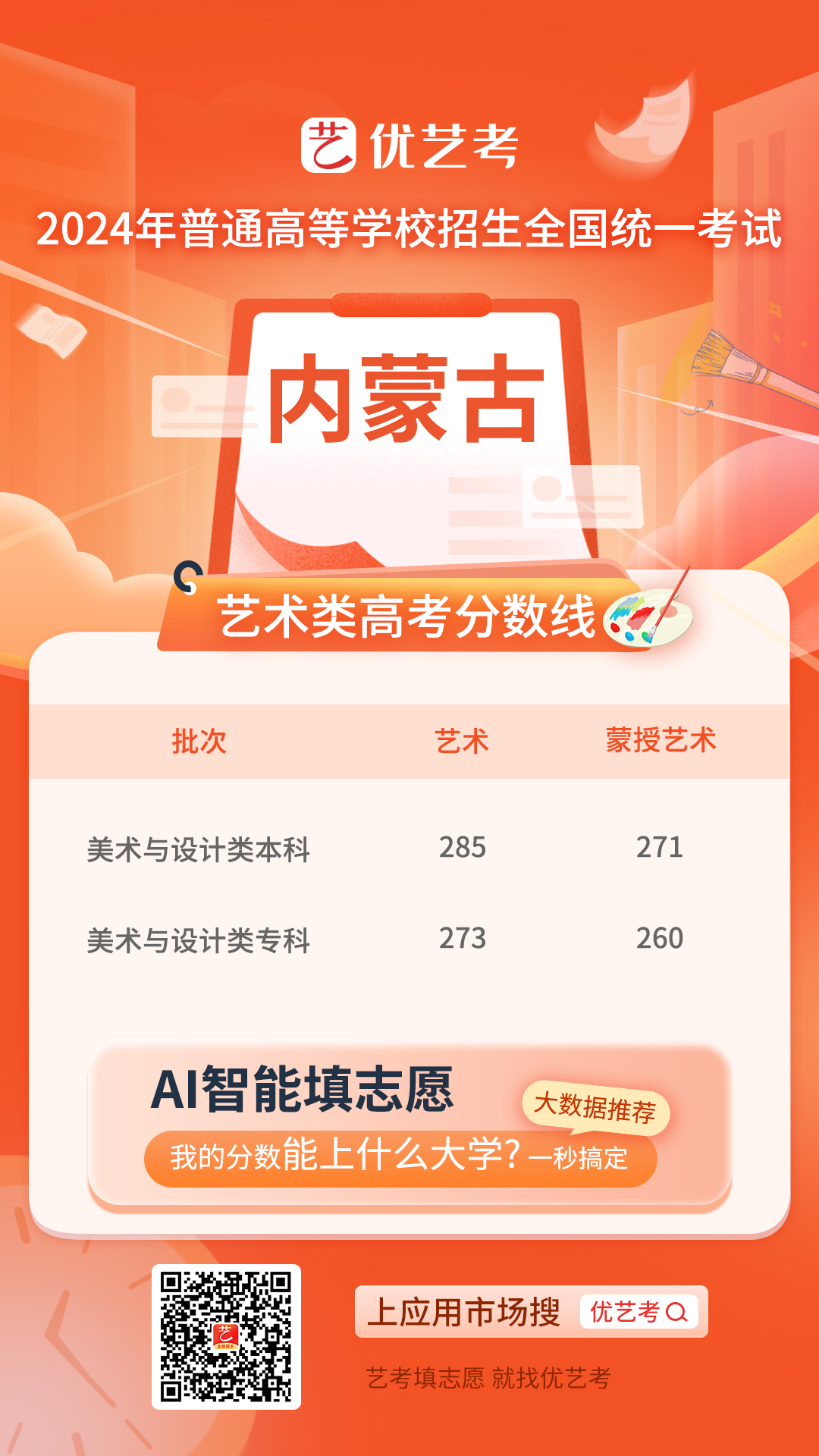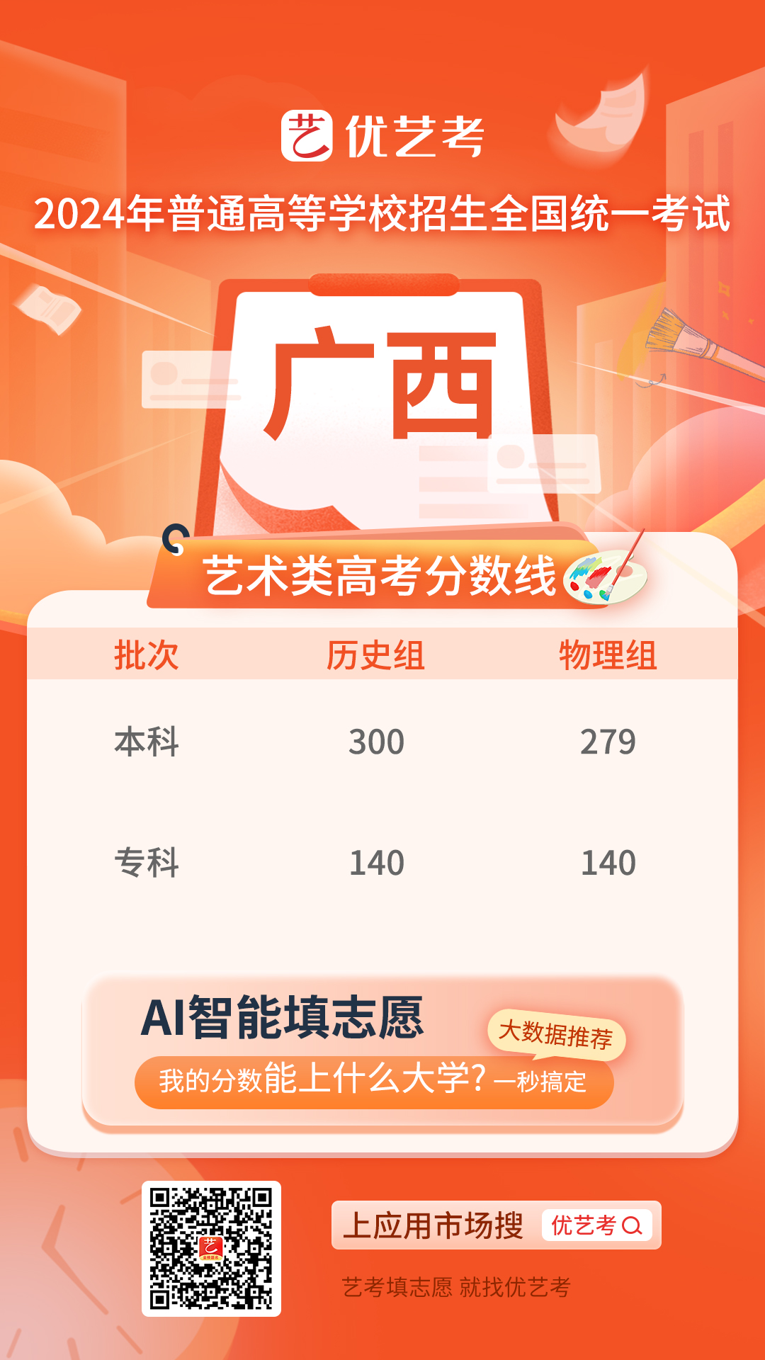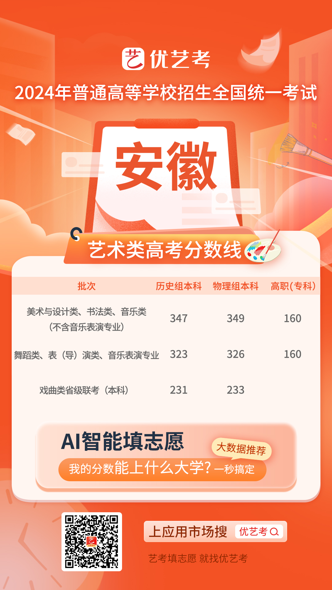 2024年高考工作正式启动,考生们对于录取分数线的关注度也达到了顶峰。特别是对于艺术类考生而言,录取控制分数线是他们选择志愿、规划未来的重要参考依据。为此,小优在第一时间发布并更新了2024年全国高考艺术类录取控制分数线汇总,希望能为广大艺术类考生提供及时、准确的信息支持。