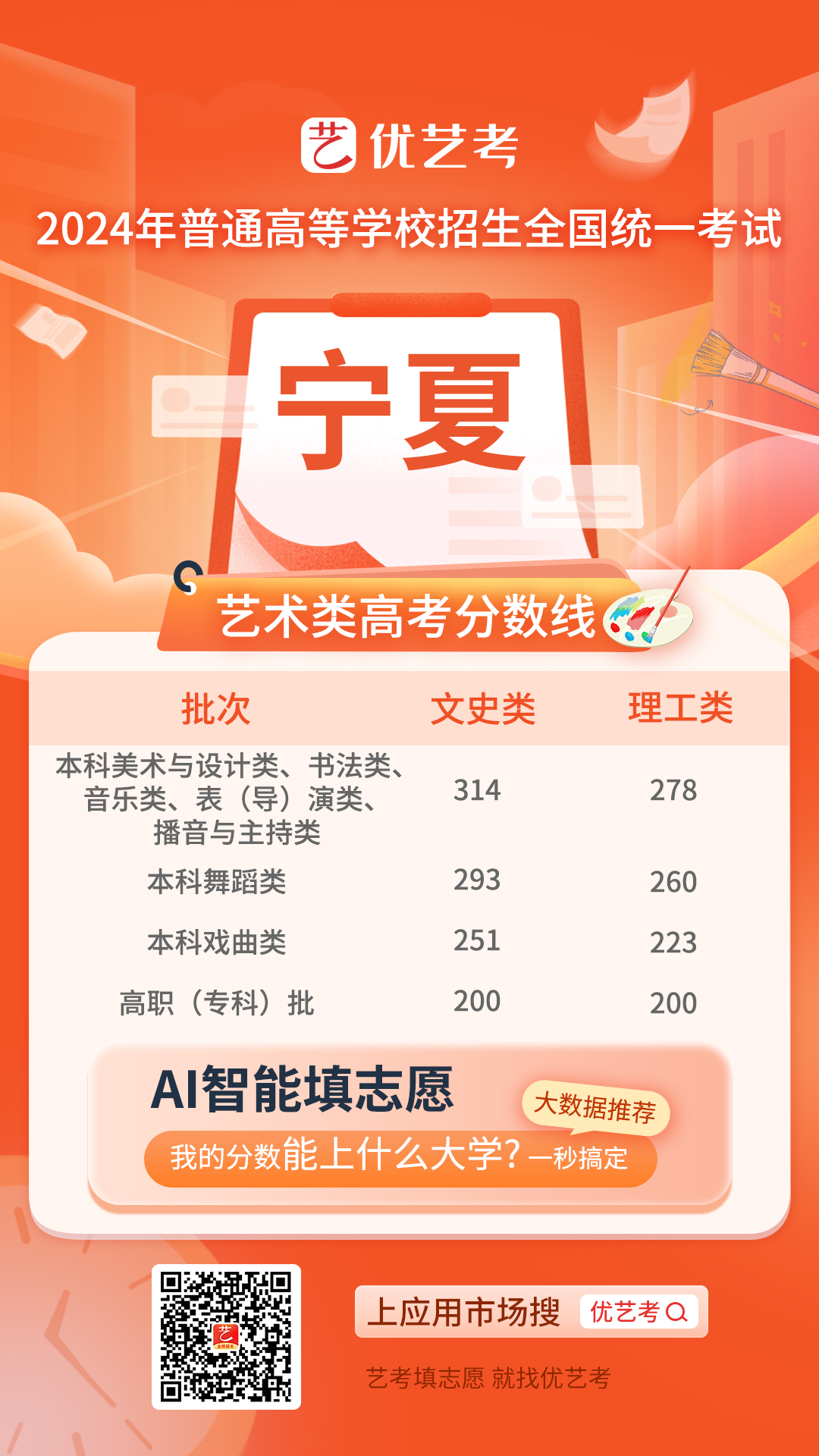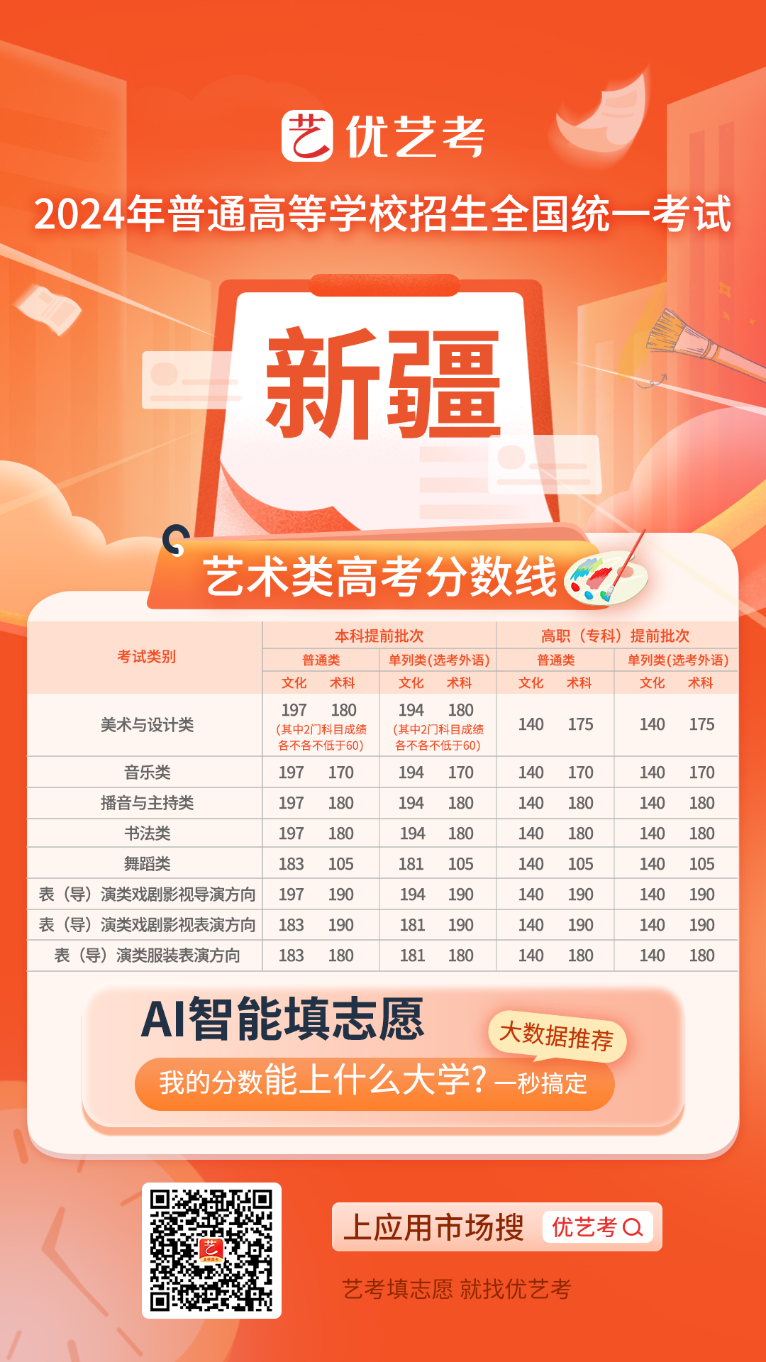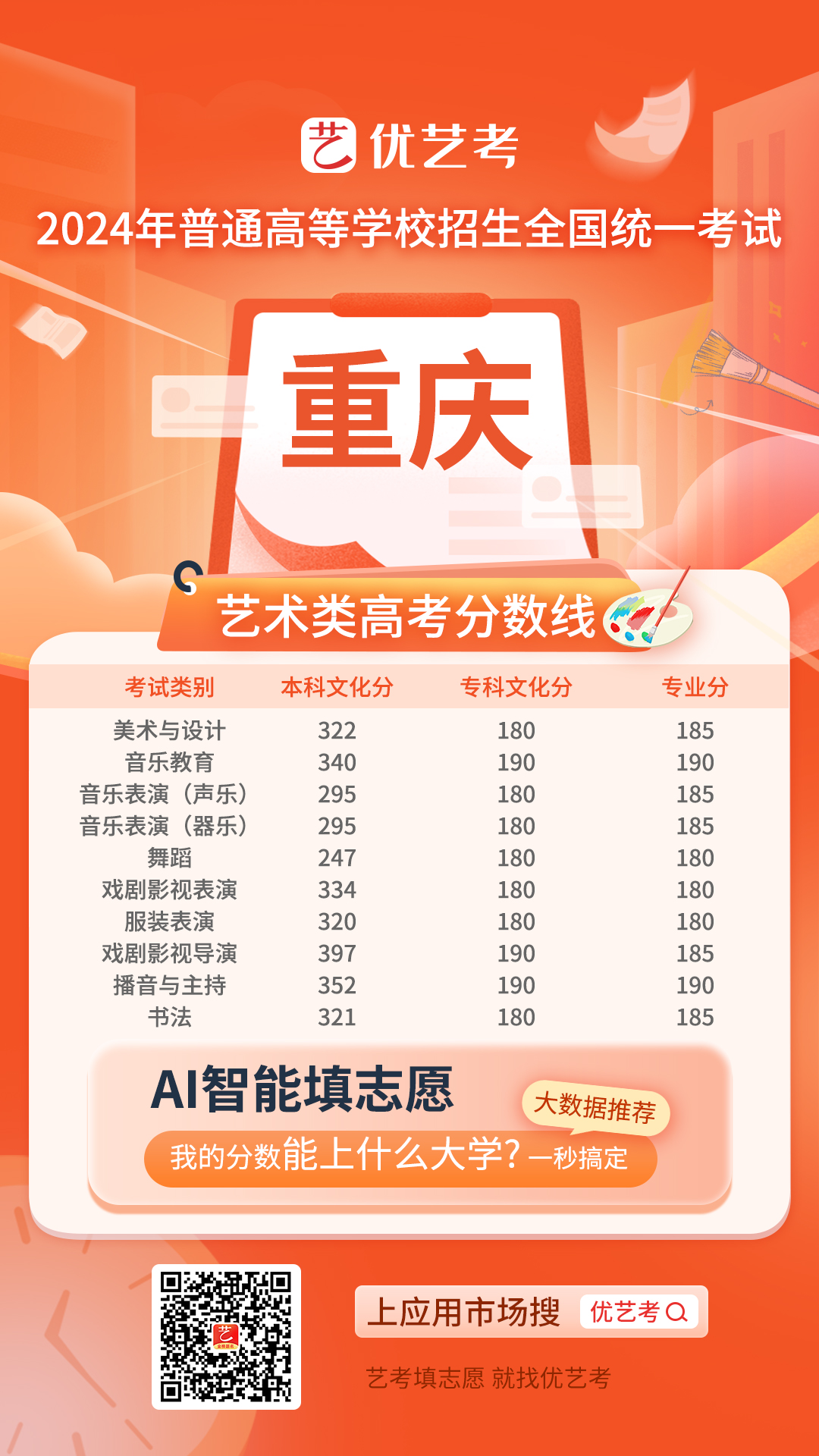 2024年高考工作正式启动,考生们对于录取分数线的关注度也达到了顶峰。特别是对于艺术类考生而言,录取控制分数线是他们选择志愿、规划未来的重要参考依据。为此,小优在第一时间发布并更新了2024年全国高考艺术类录取控制分数线汇总,希望能为广大艺术类考生提供及时、准确的信息支持。