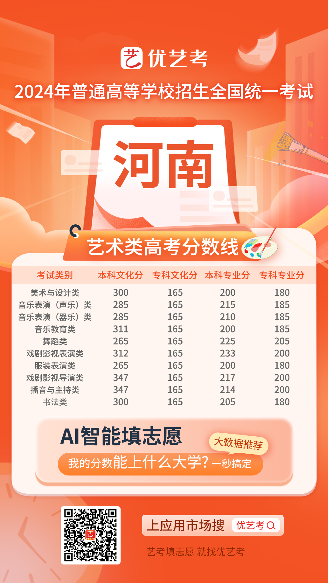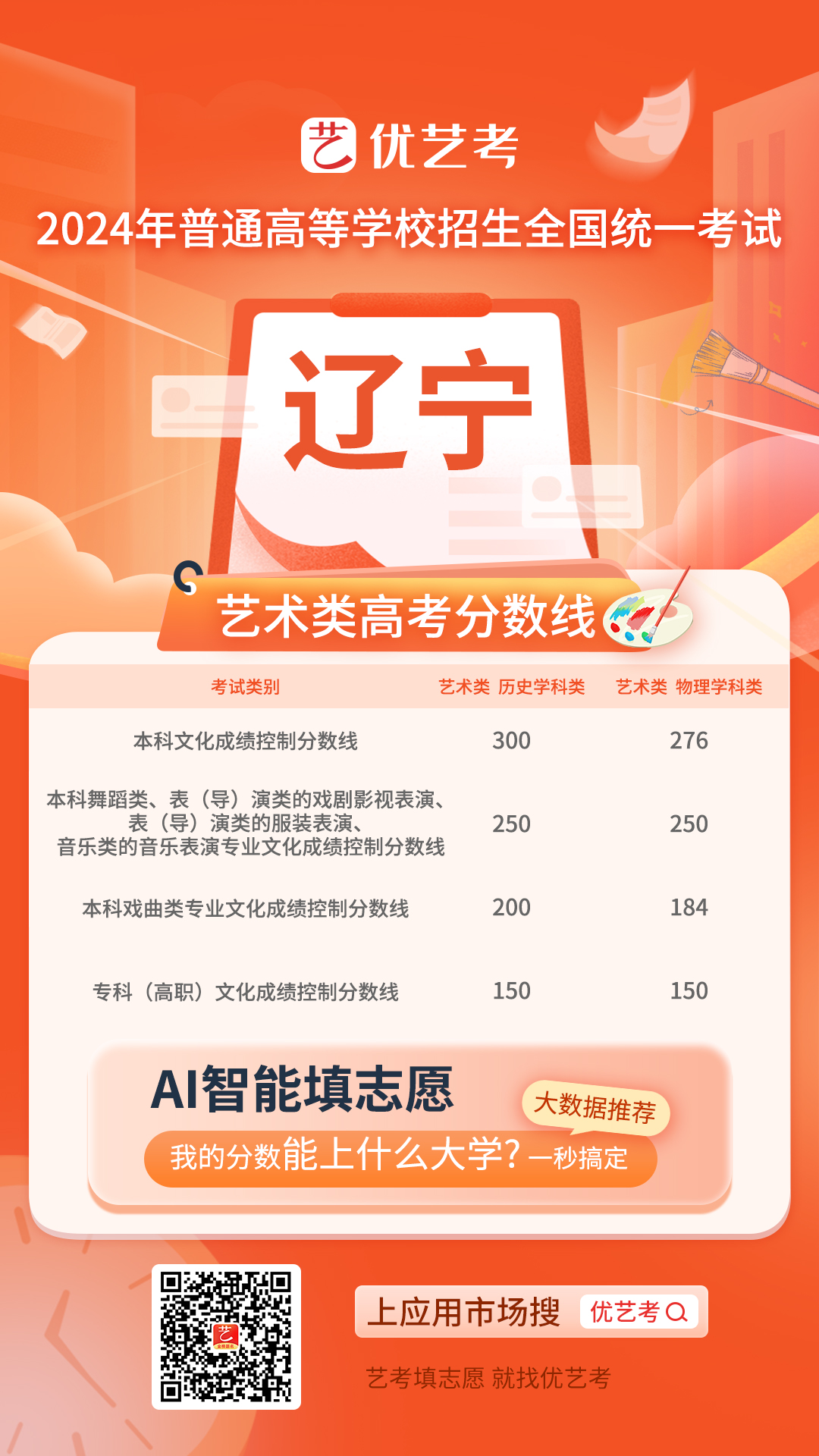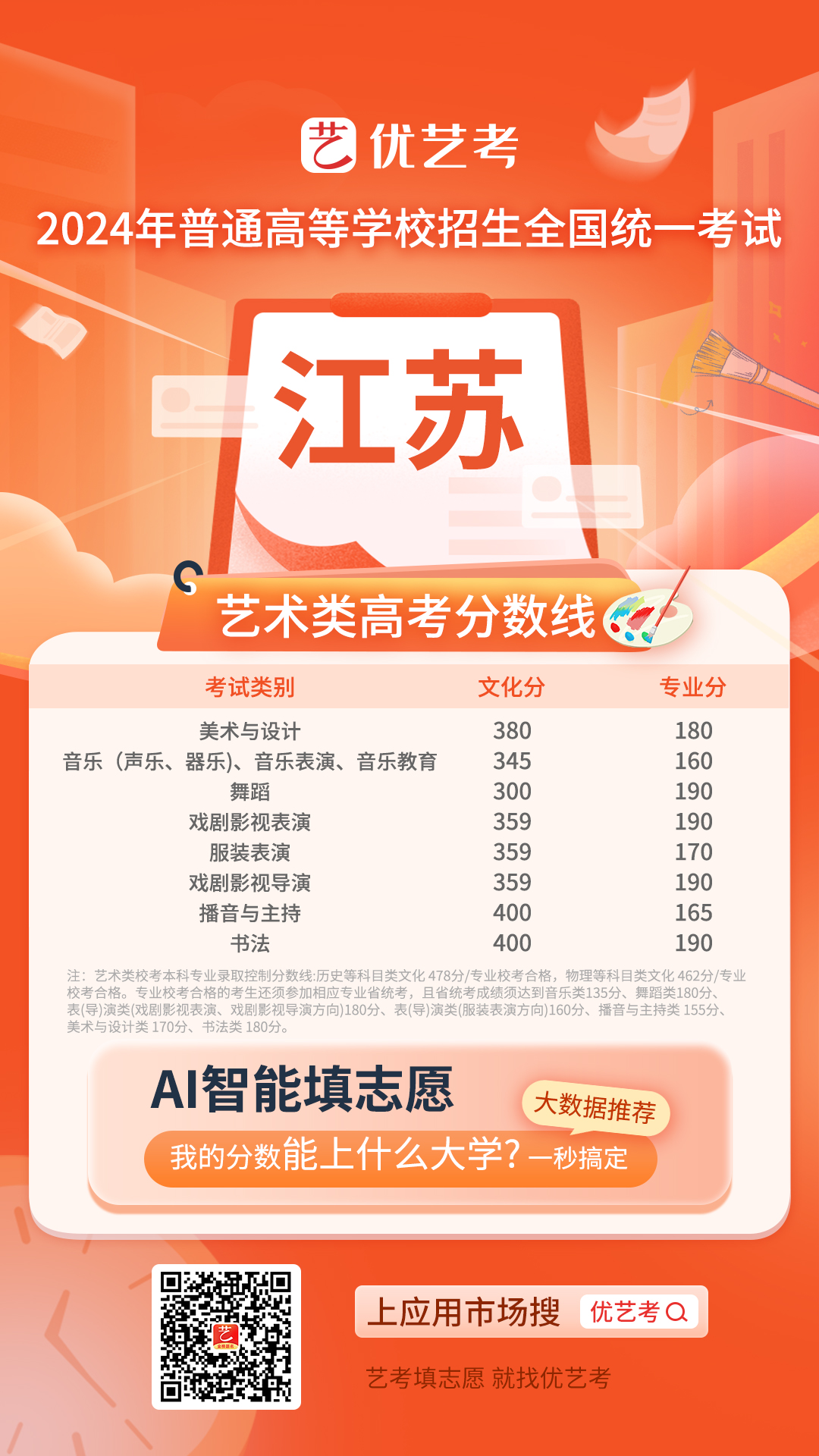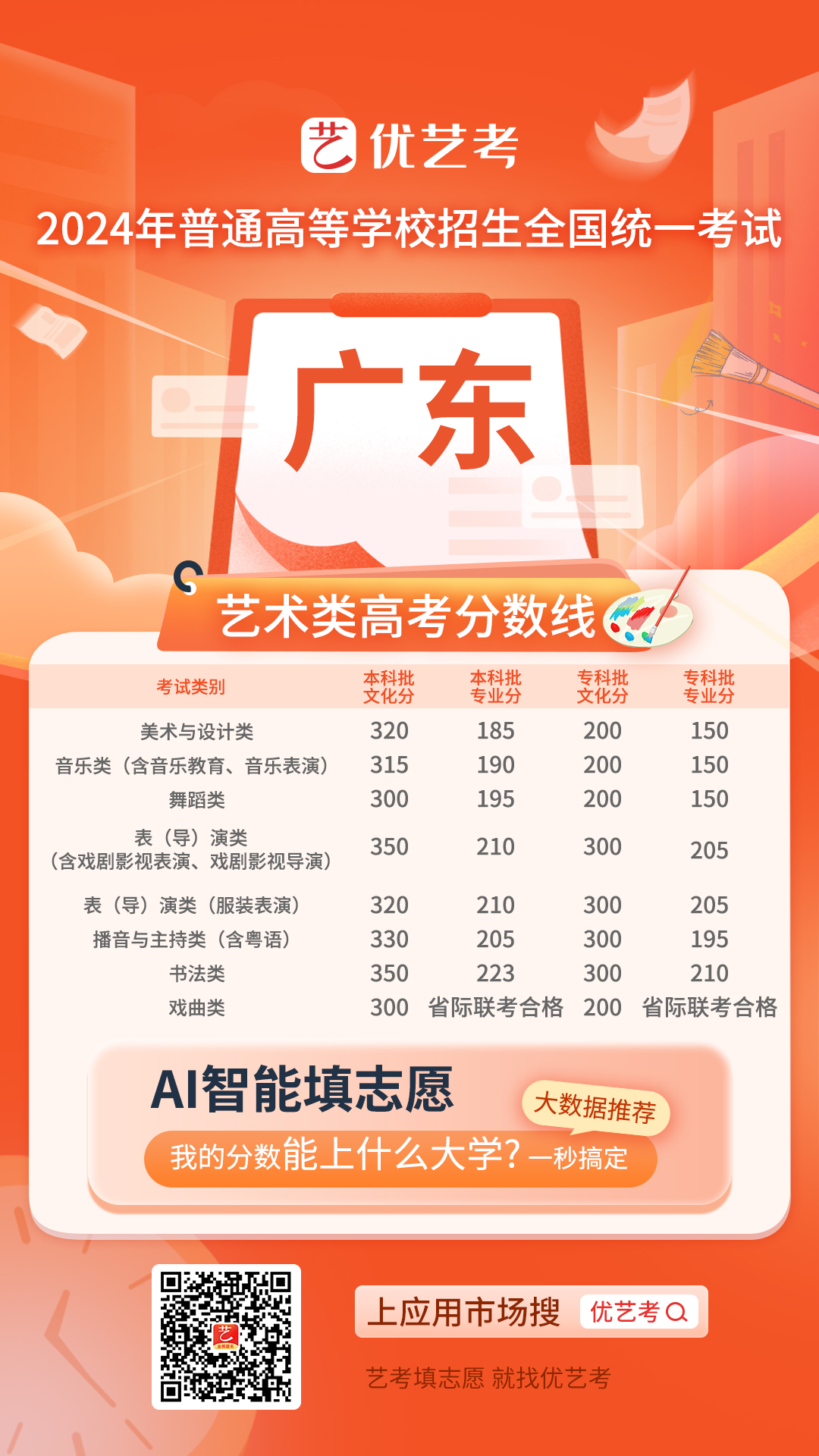 2024全国高考艺术类录取控制分数线汇总