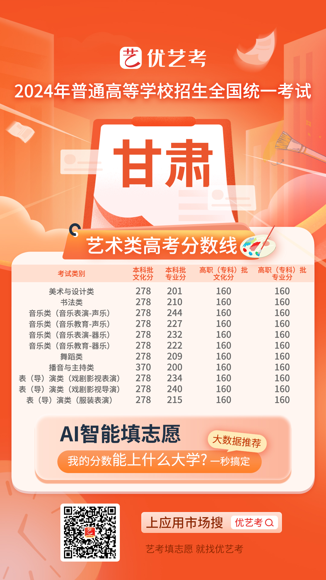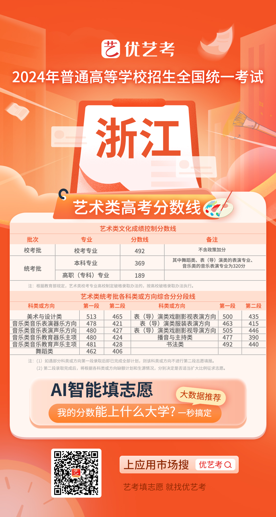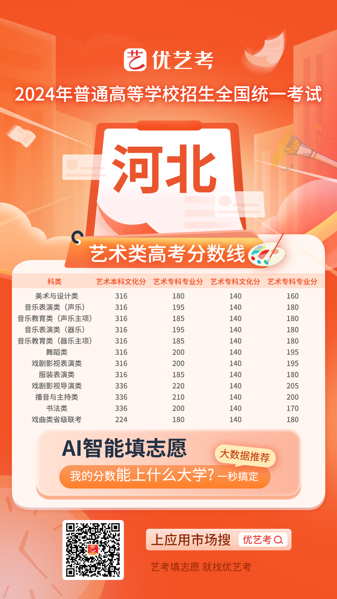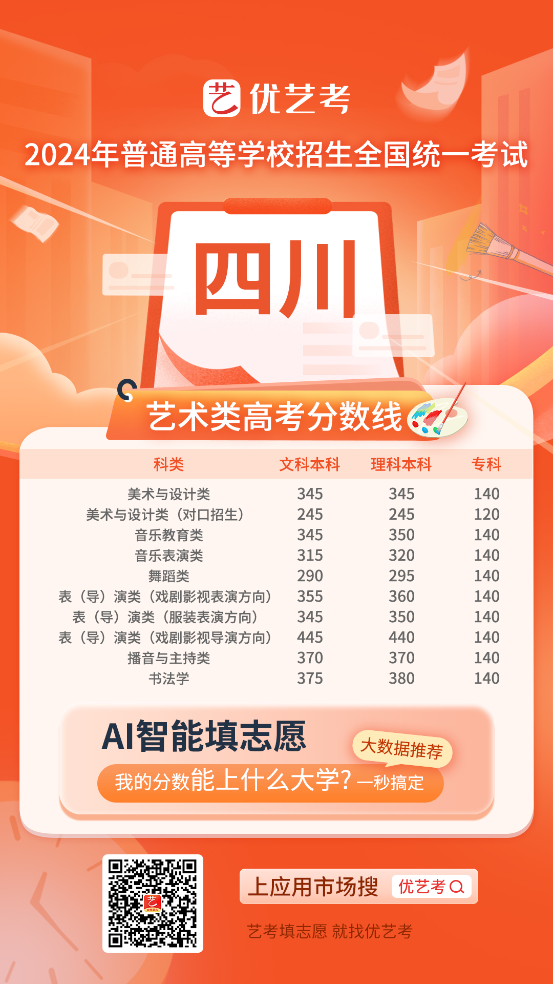 2024全国高考艺术类录取控制分数线汇总