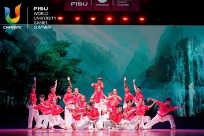 ▲我院学子登上成都大运会“村晚”舞台表演