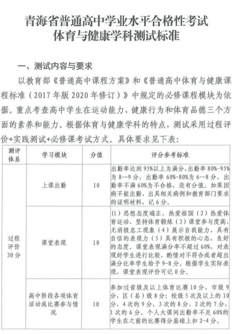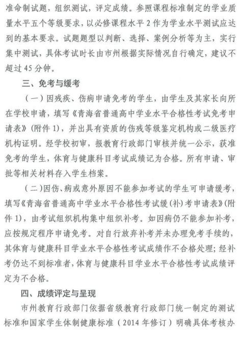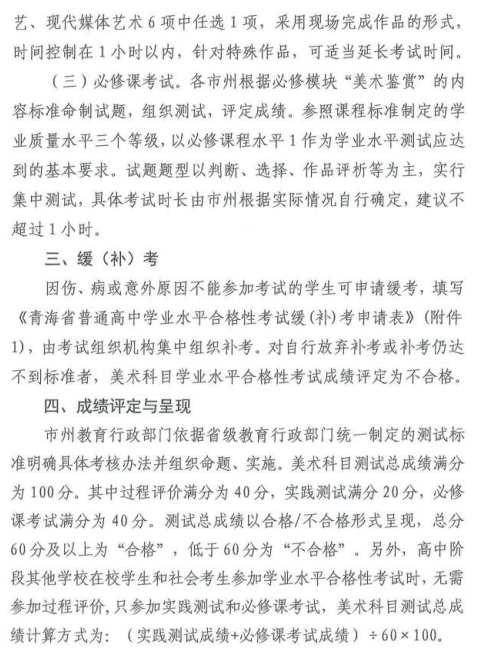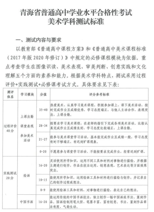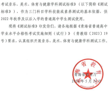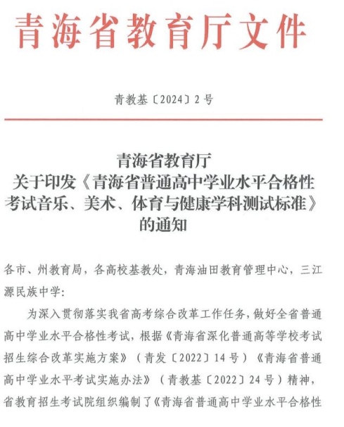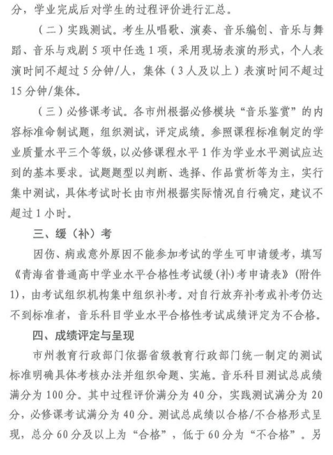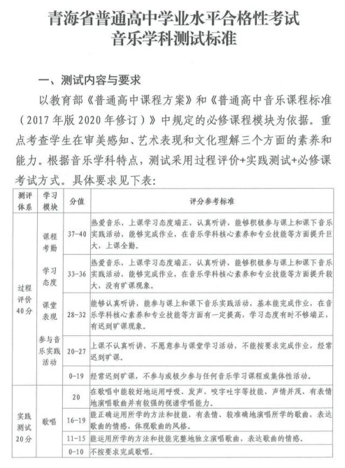 关于印发《青海省普通高中学业水平合格性考试音乐、美术、体育与健康学科测试标准》的通知