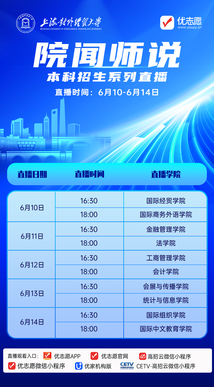 现有本科专业35个(其中国家级一流本科专业建设点16个),建有国家级一流本科课程10门,以及上海市一流本科课程、上海高校一流本科建设引领计划项目、上海高校课程思政重点改革领航学院、上海市级重点现代产业学院等一系列本科教育教学项目,通过英国商学院毕业生协会(BGA)银牌认证。深化人才培养模式改革,构建形成全球