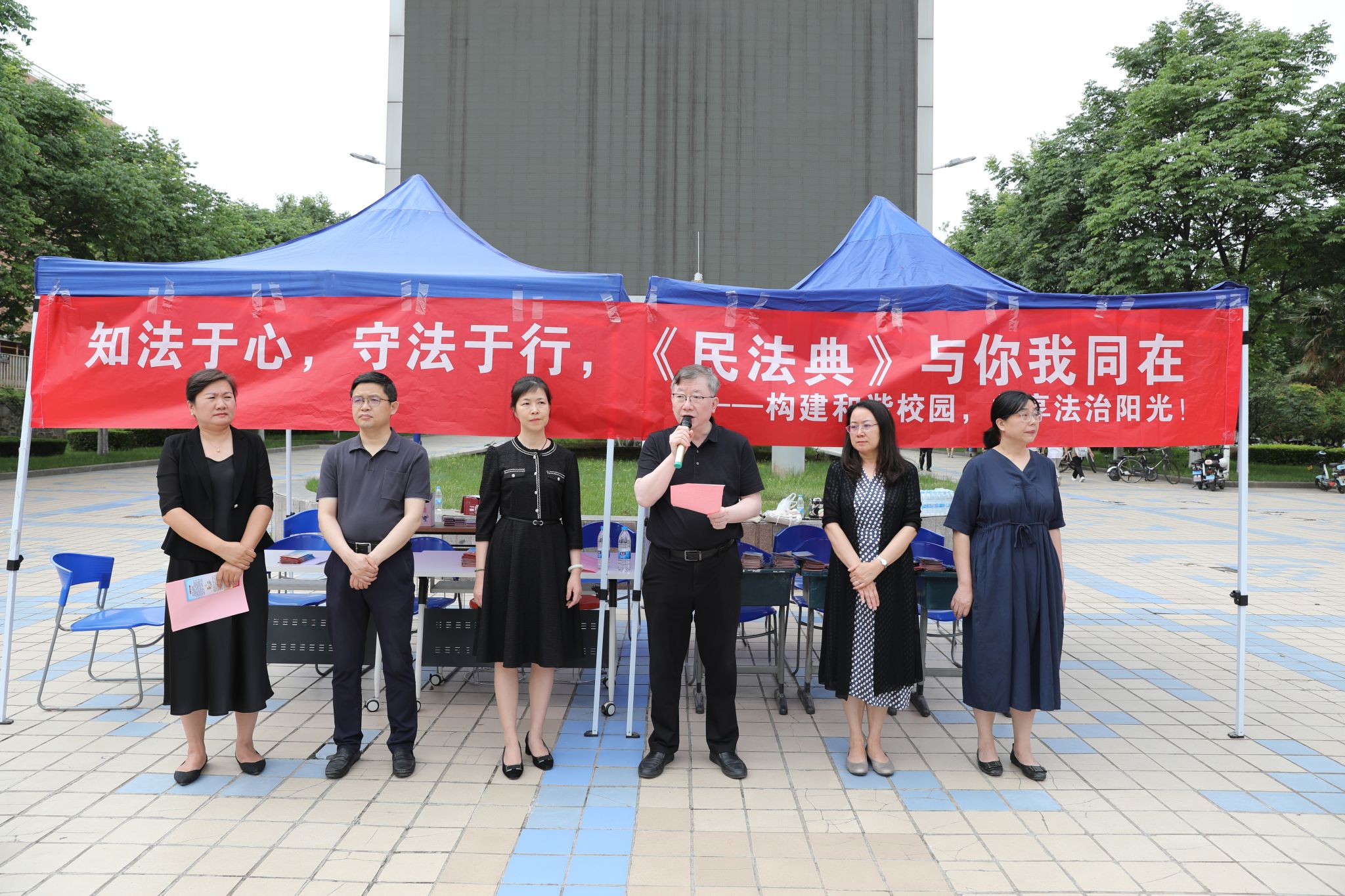 5月31日,我校在临潼校区中心广场举办“美好生活与《民法典》同行”主题宣讲活动,副校长戴鸿出席活动并致辞,党委宣传部、党委学生工作部(处)、党委研究生工作部、校团委、人文社会科学学院等单位负责人以及广大师生参加了活动,这是我校全面开展2024年“民法典宣传月” 活动的重要环节。
