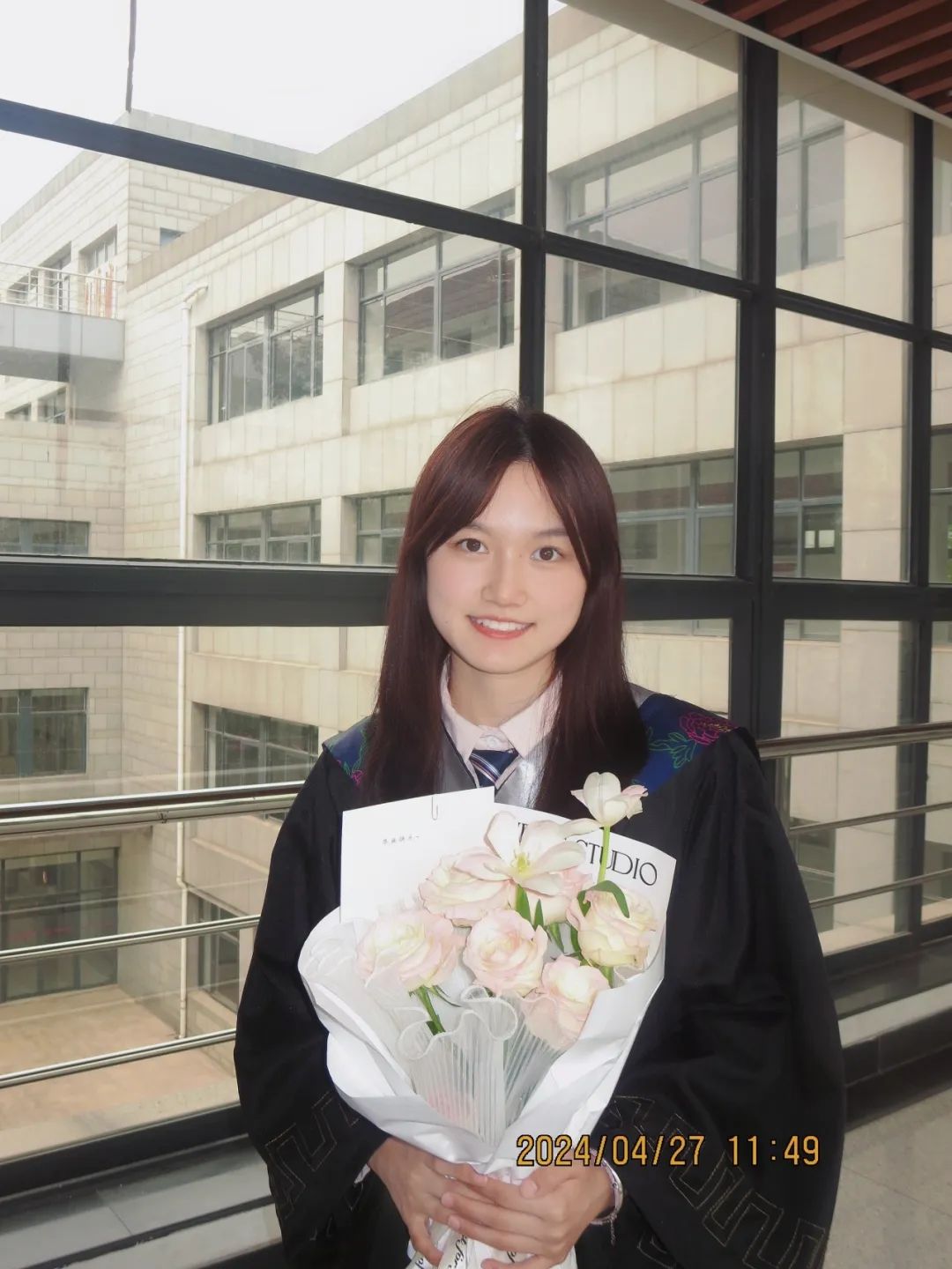 四年的本科生活如白驹过隙,回想以前的点点滴滴,却犹如昨日。她由衷感谢给予了她帮助与关怀的所有老师、陪伴支持她的朋友及家人,四年追梦旅程,她见过日升前的初昼,见过夜深时的星斗,下得苦功夫、求得真学问。未来她将肩负使命与期待继续砥砺前行,等枝桠成繁花。