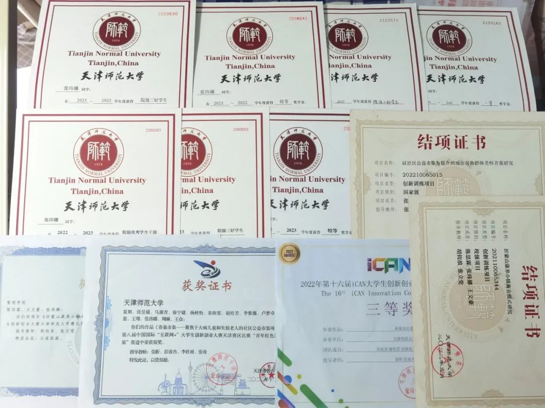 追求卓越,立志创新。在积累了一定的专业知识后,她积极参与创新创业项目与学科竞赛,力求在实践中锻炼自己。大二,她参与申报了校级大学生创新创业训练项目《沂蒙山康养小镇商业模式研究》,为小镇商业模式创新提出建议,现已顺利结题,获第七届中国国际互联网+大学生创新创业大赛校级二等奖。大三,在总结经验教训的基础上,她参与申报了国家级大学生创新创业训练项目《春巢市集——聚集于大病儿童和失独老人的公益市集》,现已顺利结题,获第八届中国国际互联网+大学生创新创业大赛天津赛区银奖、第十六届iCAN大学生创新创业大赛天津赛区三等奖等荣誉,并与团队成员共同撰写发表了一篇论文。在竞赛的打磨中,她不仅锤炼了专业知识,提升了专业素质,结识了良师益友,也愈加坚定了自己对于